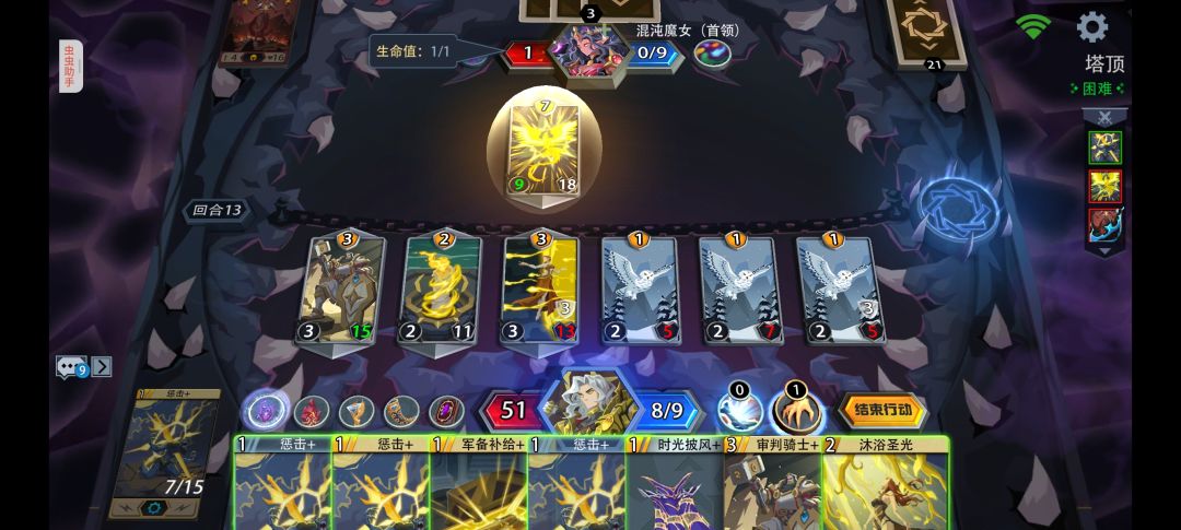 第一步: 发动拓印,将其变形为空间跃迁; 第二步: 发动空间跃迁, 将审判骑士召唤到我方场上1号位, 审判骑士的进场效果选择敌方场上1号位的重生暗影发动; 第三步: 抽牌, 献祭心魔·疯狂; 第四步: 选择审判骑士发动扭曲意志; 第五步: 装备回响权杖; 第六步: 选择敌方1号位的审判骑士发动炎魔之拥, 选择我方1号位的重生暗影发动炎魔之拥衍生卡, 重生暗影离场时将墓地中的雪鸮复活到场上; 第七步