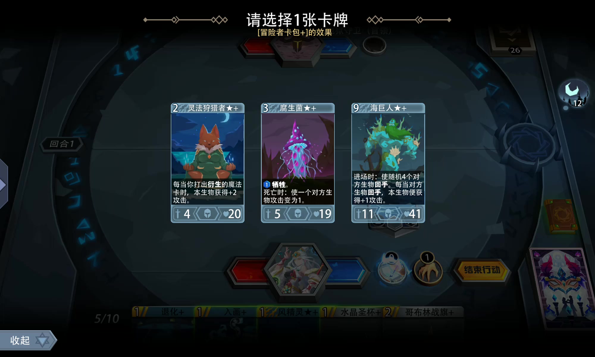 给了两张迷之微笑,然后因为升级又复制了两张,然后卡牌删减,通过献祭下人马,然后又献祭加攻击,通过软泥怪的主动技能,触动生命之刃的被动,同时触发人马的被动,人马装个吸血的装备,直接永动封神!