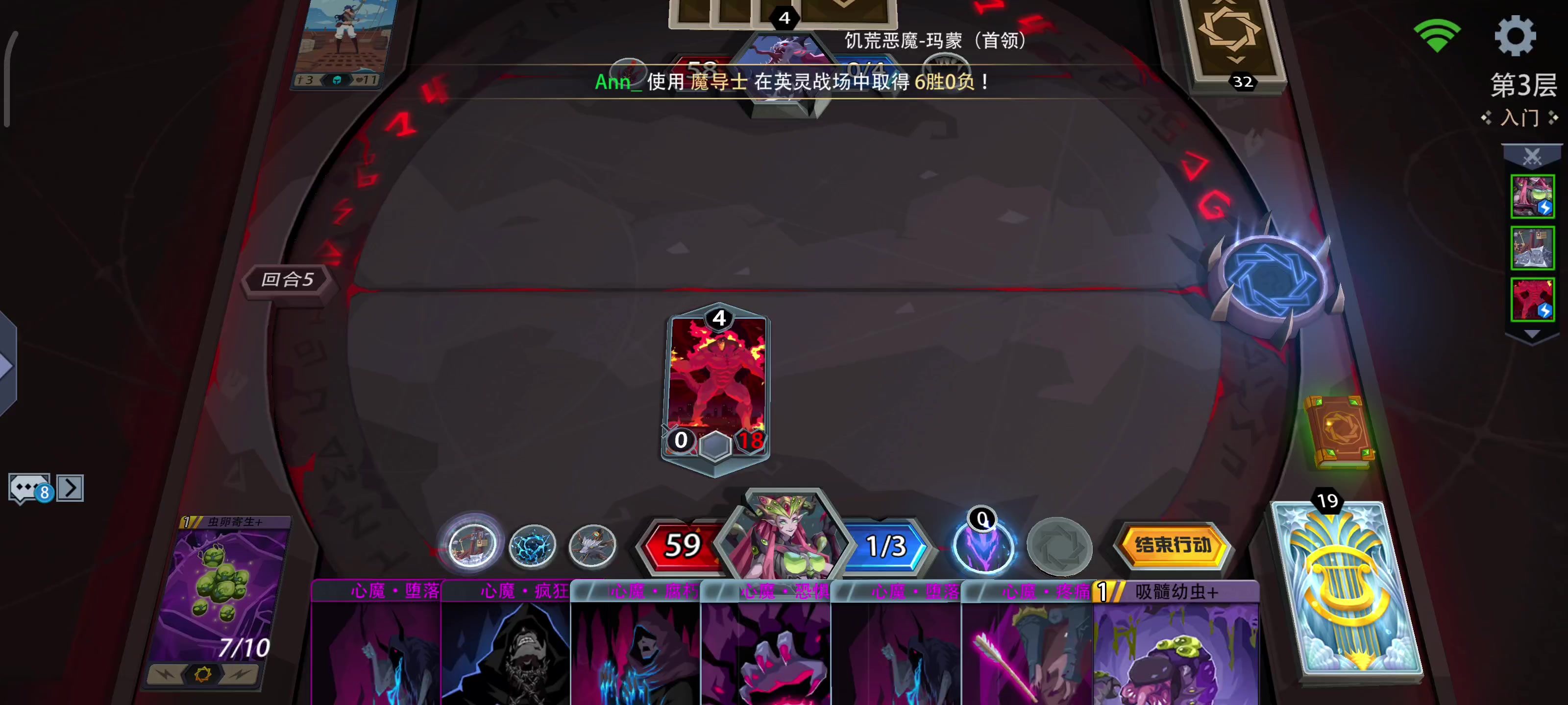 5级英雄,打了两颗红魂1000魂力,四系卡池,英雄技能偏弱,被动基本可以无视,打的比较艰难,尝试四次才过,之前每个英雄我最多打两次都是必过。黑塔要写攻略那就太复杂了,胜在灵活,这种等级低比较弱的英雄,主要一是运气要好,二是前期要过渡好,利用好储卡箱,有些卡前期关卡不需要就不放进卡组占位置后面再拿出来,特别是第一条天赋点出来之前,一定要合理拿卡,多留点钱加血,有些关卡如果占了优势又有回血装备要拖着打