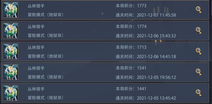 首先放上一点点丛林猎手的战绩,正巧赶上这周想打,就稍微打了几局丛林猎手的地狱三(我只有这一个英雄达到了26级)。具体得分情况见下文详情。