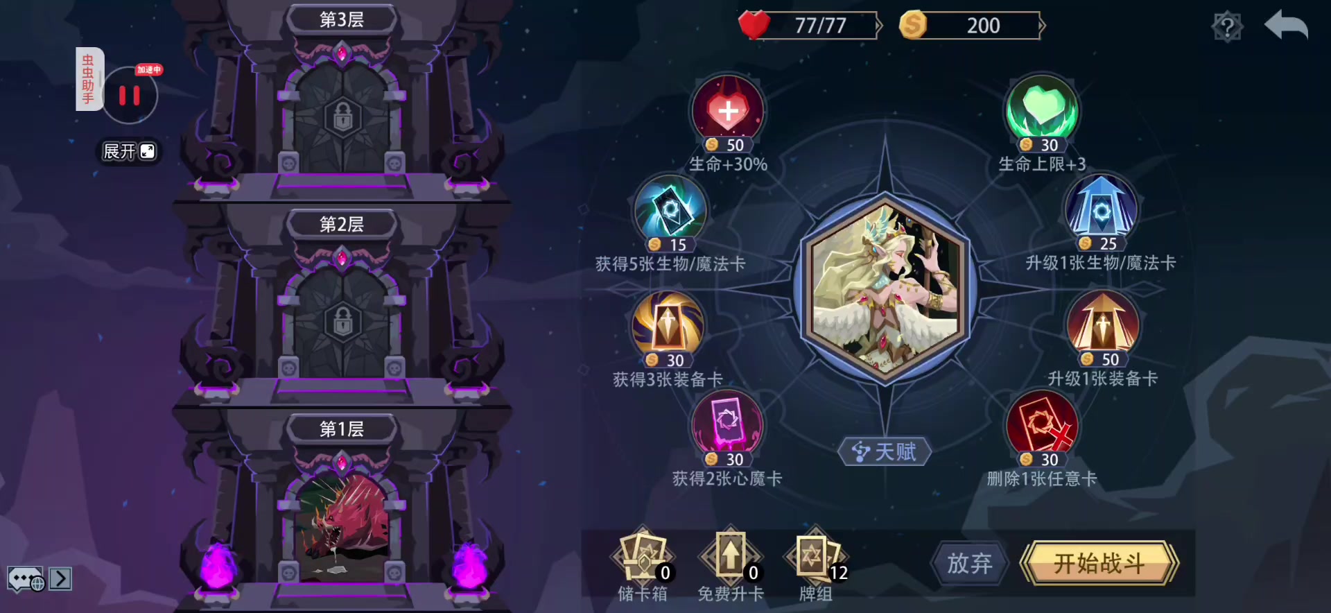 难得的好运气用在打首通上了, 开局奖励三选一, 选100经验升级给了熔炉, 紧接着升级奖励就给了雕像…… 打吧
