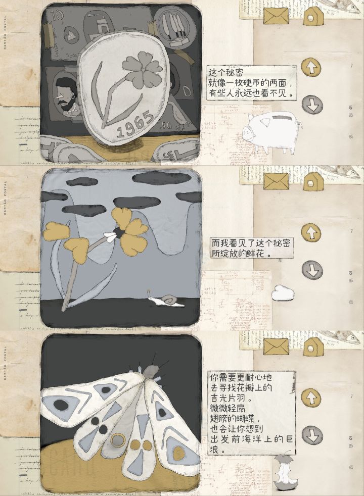 《远方的故事》与《厚厚的时光》是有一些相同之处的,二者都是以这种绘本的形式展开的故事。不过,《厚厚的时光》玩法单一,互动较少,故事连贯性较差;《远方的故事》内嵌众多小游戏,规则简单,玩法多样,可互动的元素更丰富,叙事更流畅。