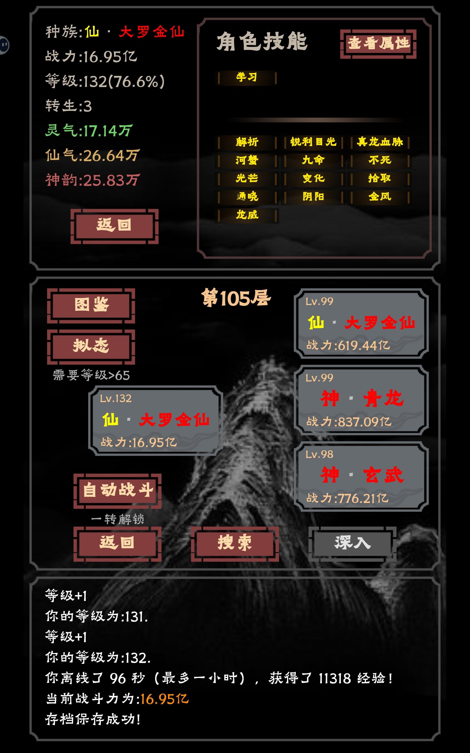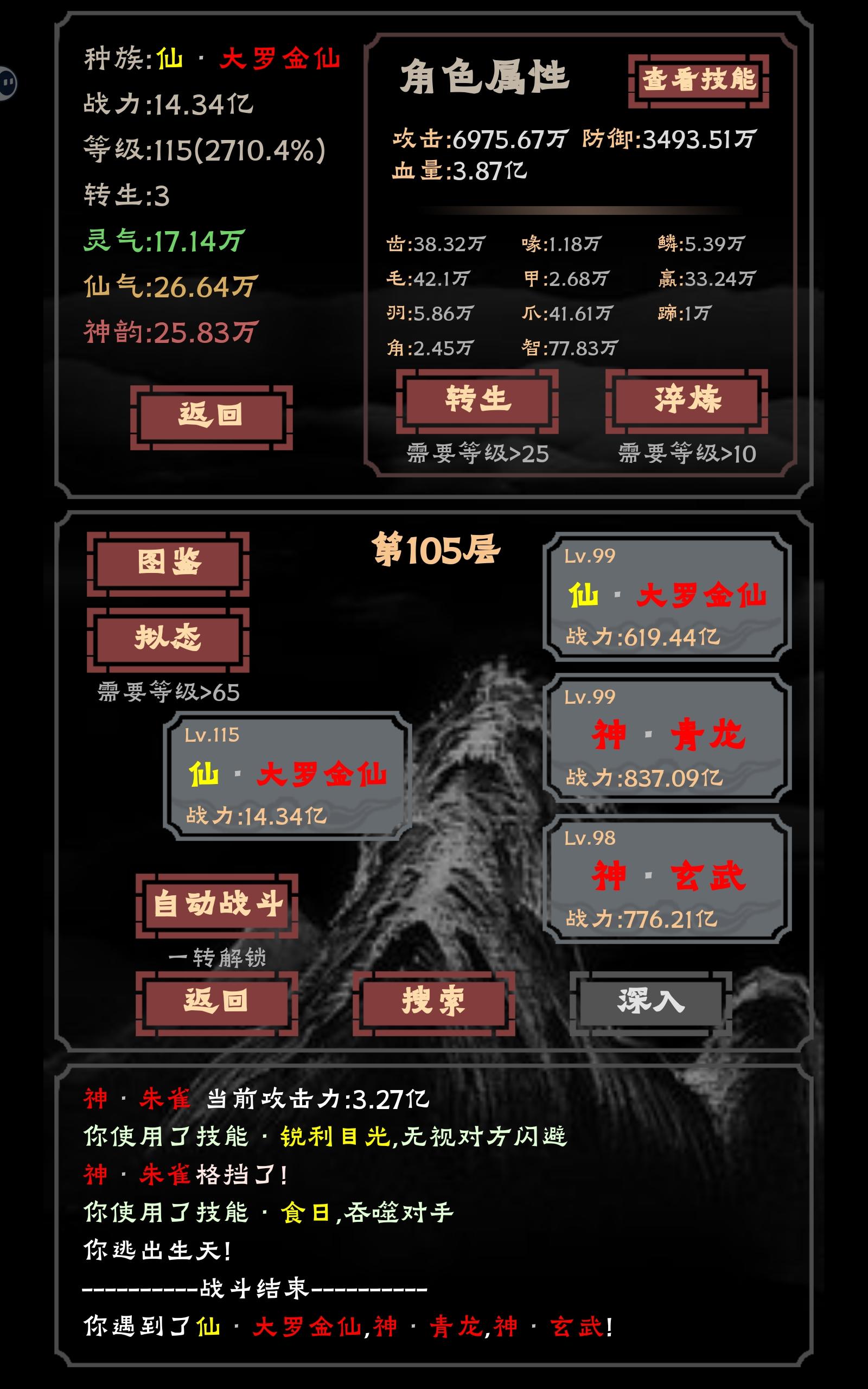 转生灵明石猴,拿到变化。核心3:九命(九命猫),不死(九命猫),涅槃(凤凰)核心2:扶摇直上(鹏类/朱雀),光芒(金乌),高飞(鸿鹄)核心1:变化(灵明石猴)拿到这些通关就绰绰有余了。如果前期技能格子不够就打人族拿个学习。如果格子有多,建议学个战意(平头哥)或真龙血脉(青龙/五爪金龙)或龙威(青龙/五爪金龙)首先说明一下变化这个技能,它是每个回合都能获得一个新技能,持续到战斗结束。也