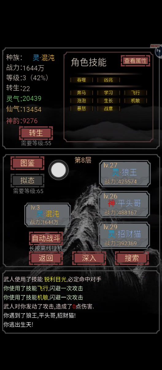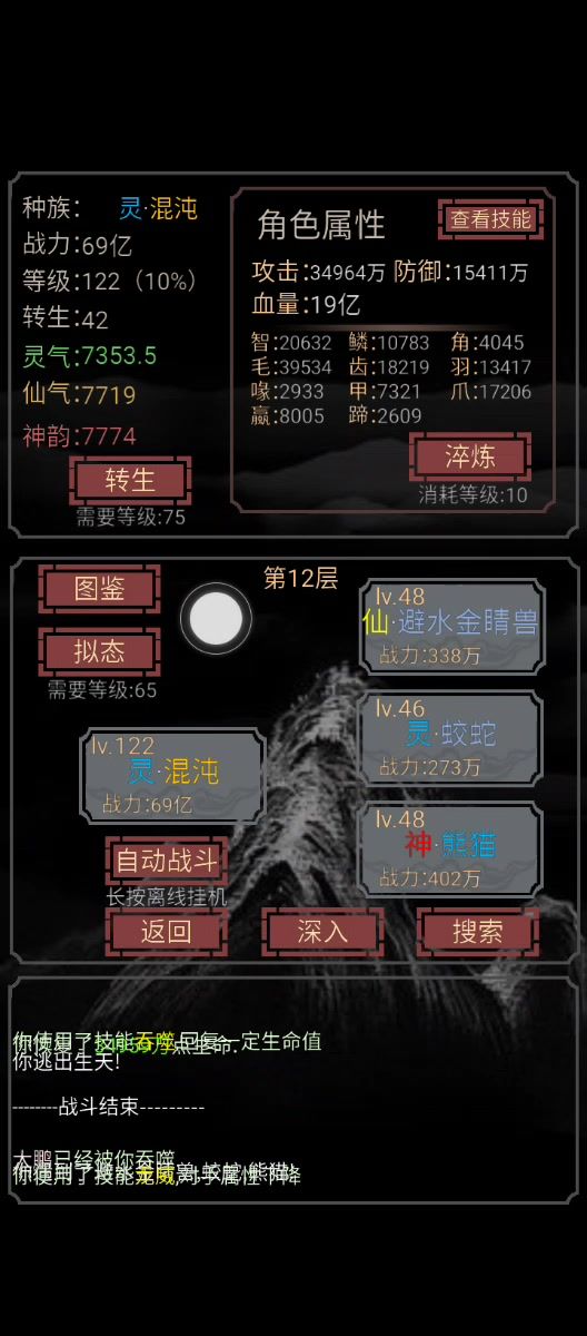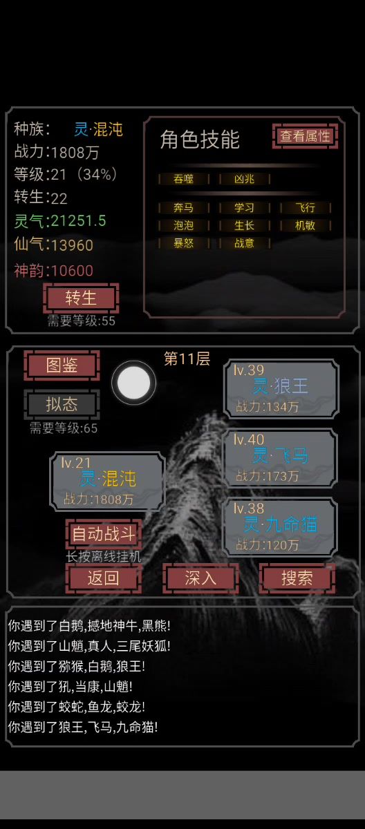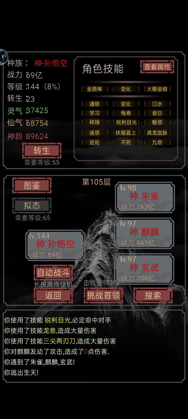 五次转生,只用了11一个技能位就通关了,不过后面从102关妲己开始死了很多次