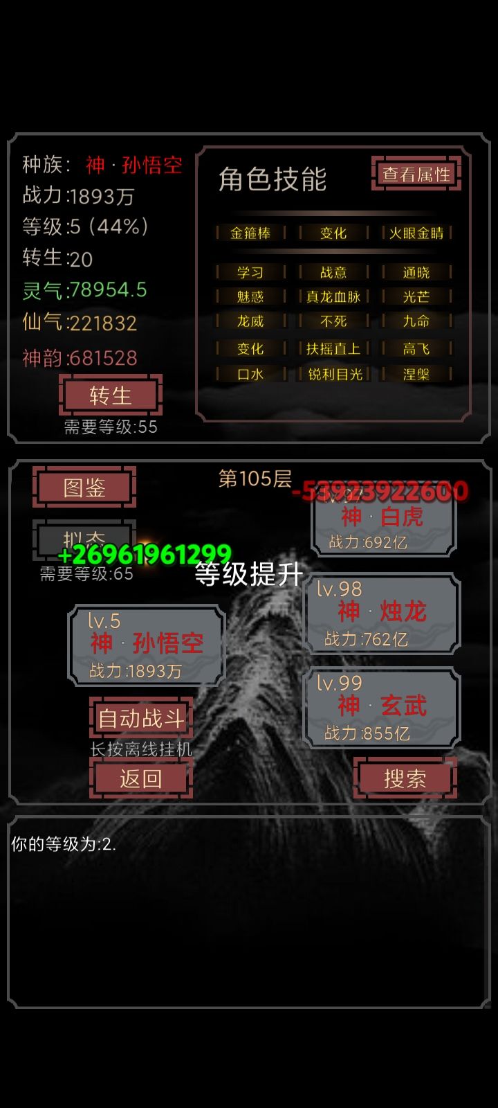1级悟空大战105层99级玄武