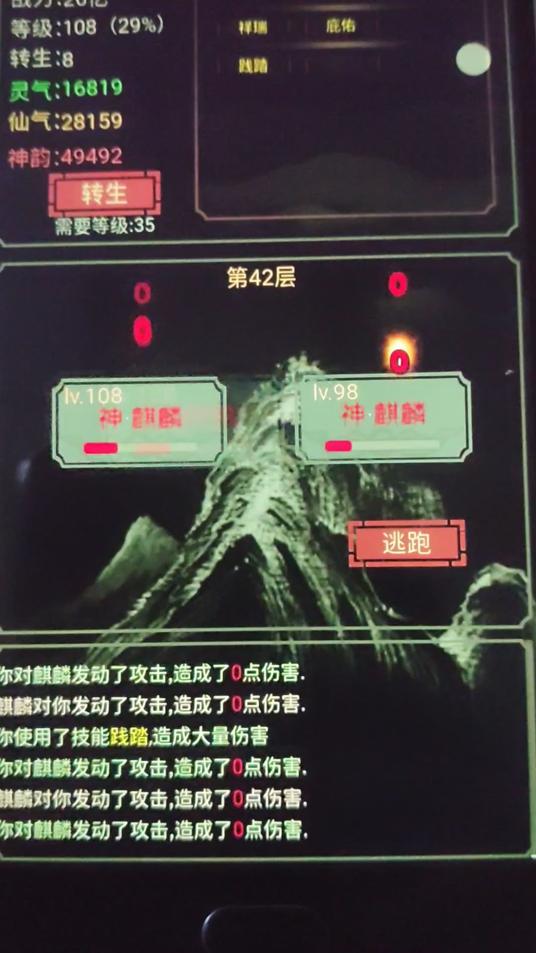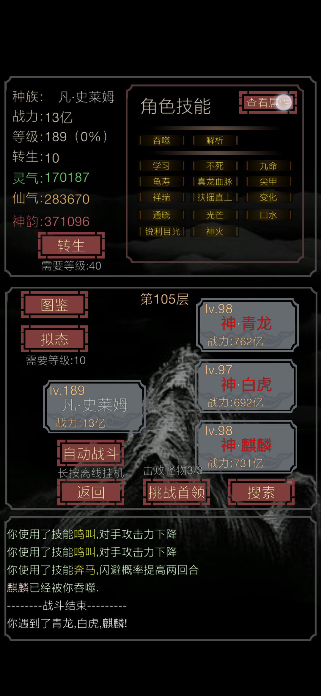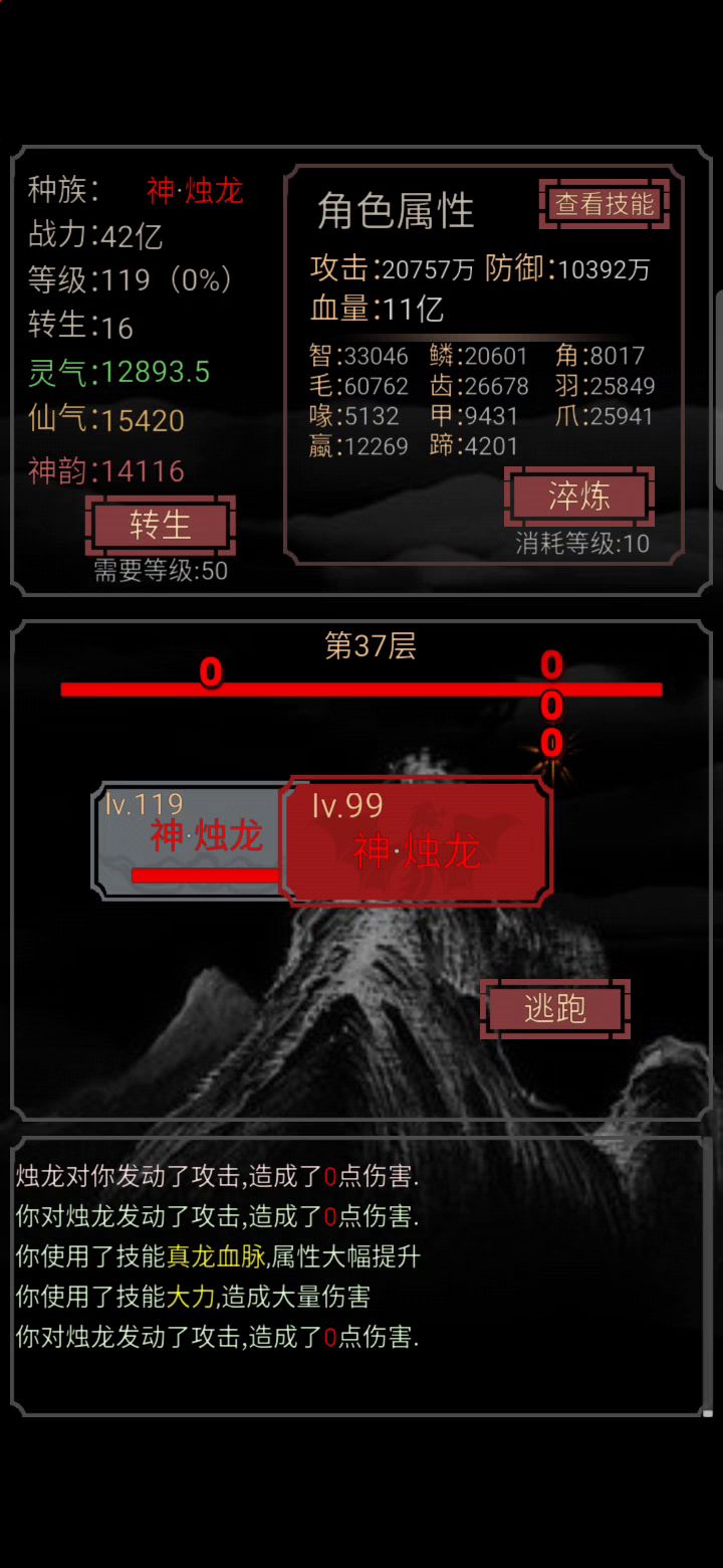 技能舒服。伤害反弹90%,加不死九命回血和闪避。苟到105层,真的不容易啊!