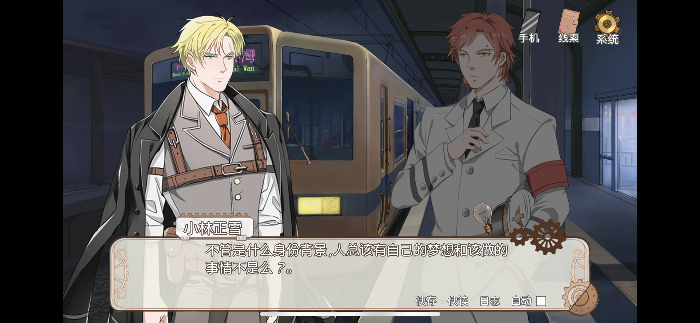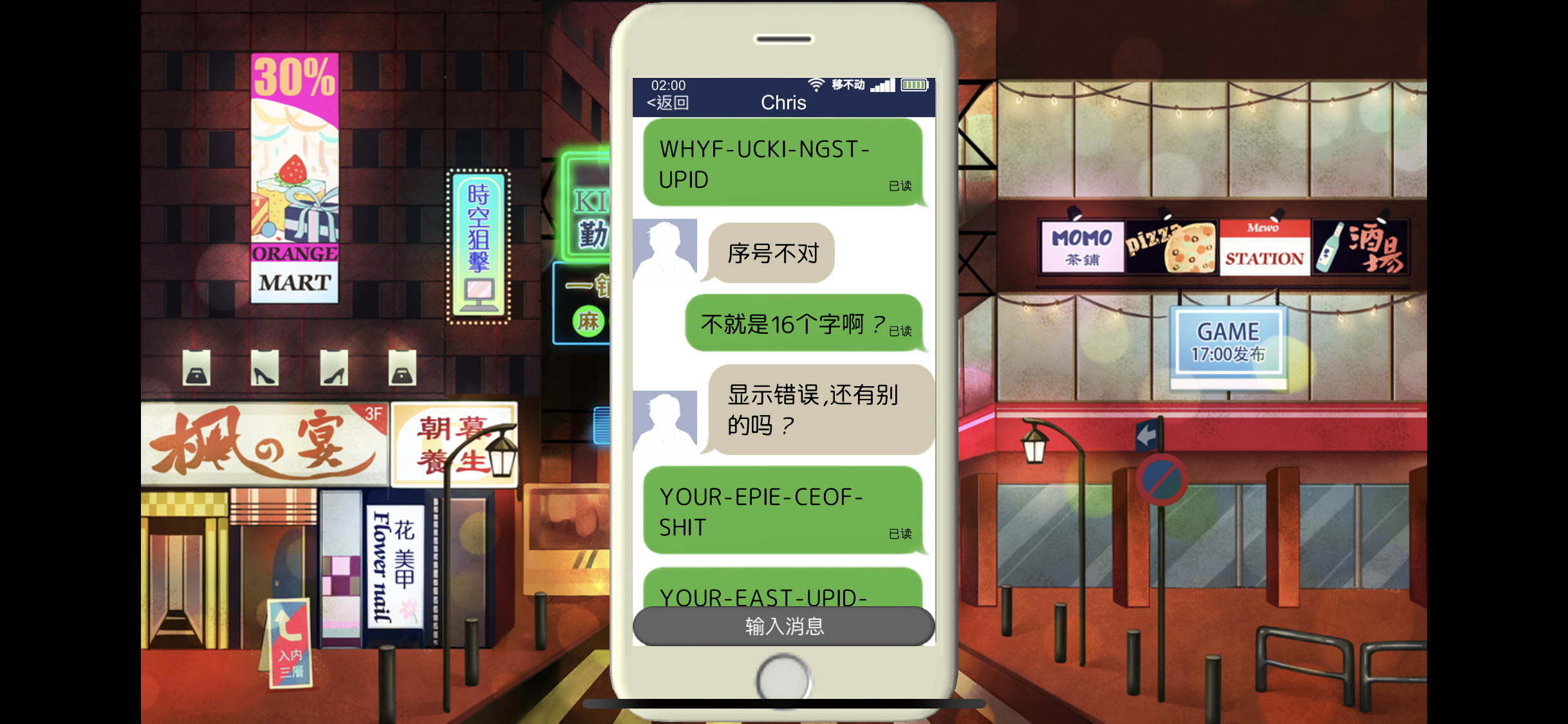 无论是剧情、立绘、还是人物台词,登味儿都特别重,还有非常刻板印象的人物塑造,配角也多少有点降智,感觉不合理的地方都在为塑造主角的聪明人设而服务。看了一下游戏大概是在六七年前发行的,如果介意的话最好还是跳着玩。不聊跟案子和主线剧情相关的事件的时候,基本上都是主角的猥琐发言及心理活动,好好的游戏玩着玩着总是在不经意间恶心人一下,像是好好走在路上,每走几步总有只装泥不装花的花盆掉下来砸脑袋,真是让人防不胜防。