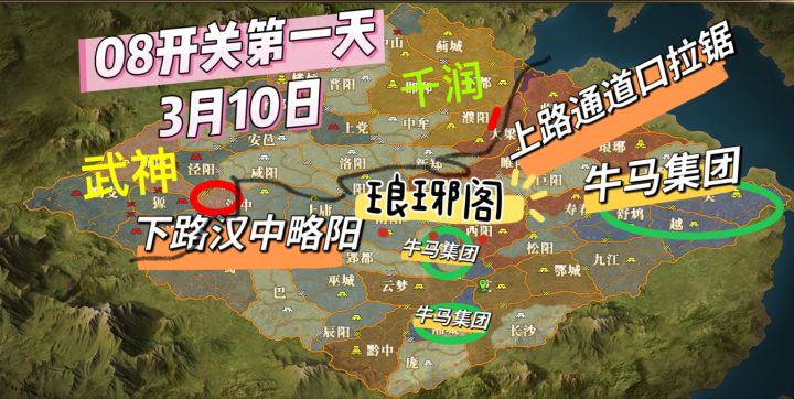 主要参战双方:秦国:梦桃园、武神丨将进酒、神御家族、缘起九州六国:琅琊阁、逆战天下、执笔画九州(未参战世族不作列示)本赛季可谓棋逢对手,将遇良才,双方纸面实力几乎旗鼓相当,由于秦国的种田盟参战力度相对更大,故人数上秦国占优。8.31 下午13:45 一匡九合,建立霸业!随着边境关卡的开启,战斗正式开始!不出所料整个世界随着开关立即进入卡顿模式,好在大家都知道六国剧本人多必卡,所以虽然行路艰