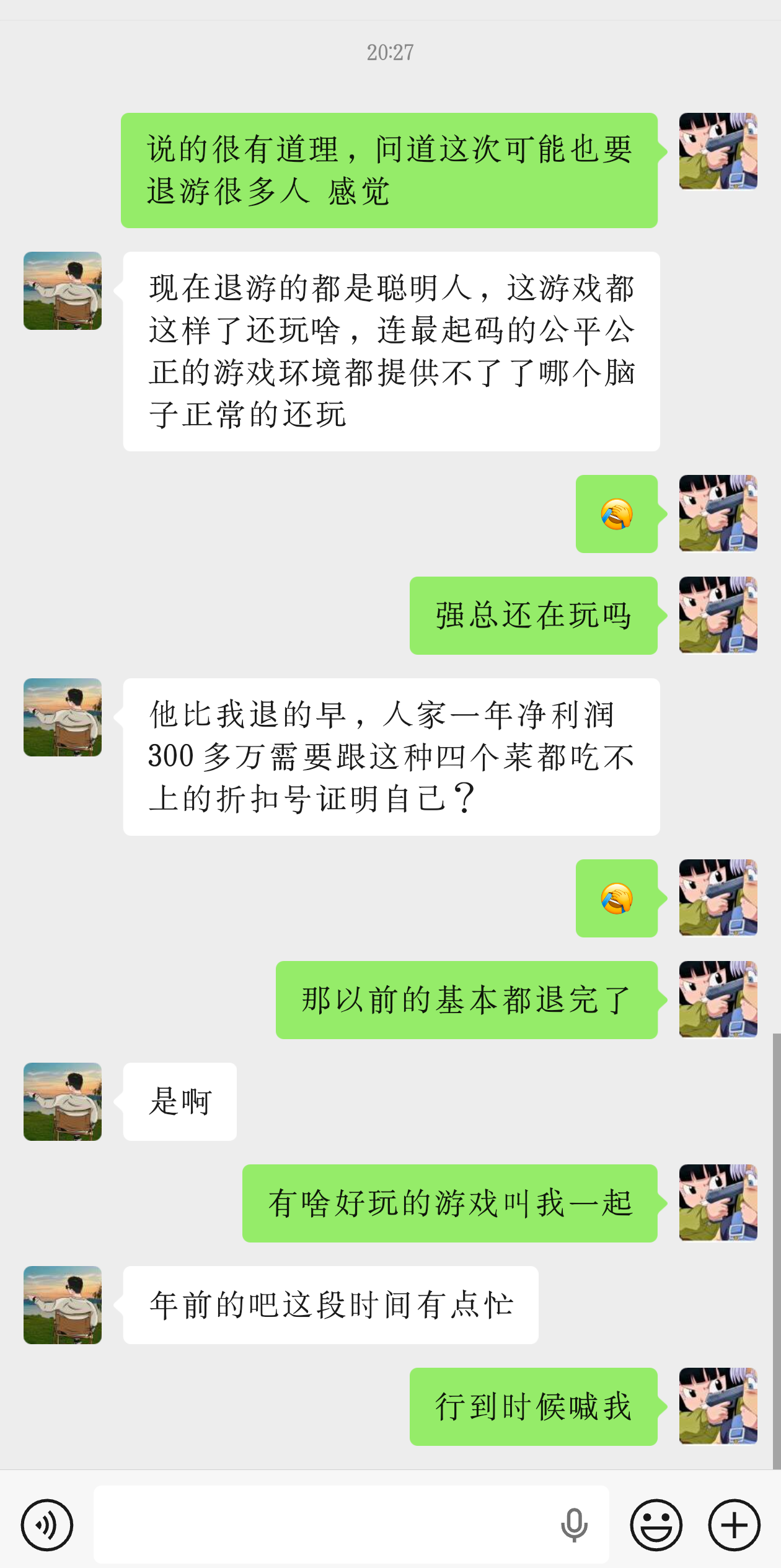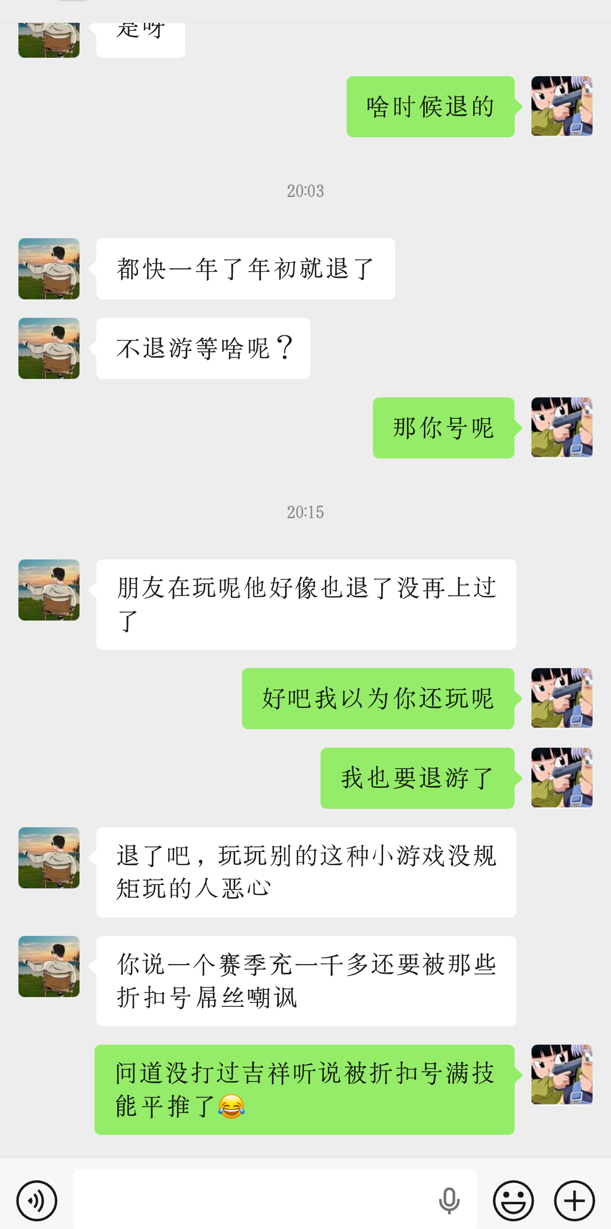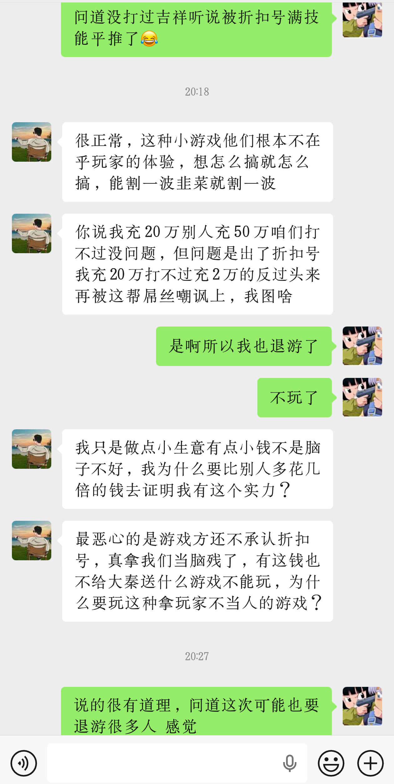 一转眼从公测玩到现在了,可能很多新入坑的玩家无法理解 这款游戏最初的时候没有一分钱的折扣那时有多火爆吧,最初的七国地图一赛季就能有二三百人打架,武斗打的难解难分,文斗喷的安排专人专区巡查,这种热度是现在这些新手玩家想象不了的,但是终究还是因为游戏团队的不作为,对折扣号的纵容导致了如今的局面,也许有人说你充了这么多钱为什么不收个折扣号,我想说的是第一自己玩了好几年的号充了那么多钱有感情,第二我作为玩