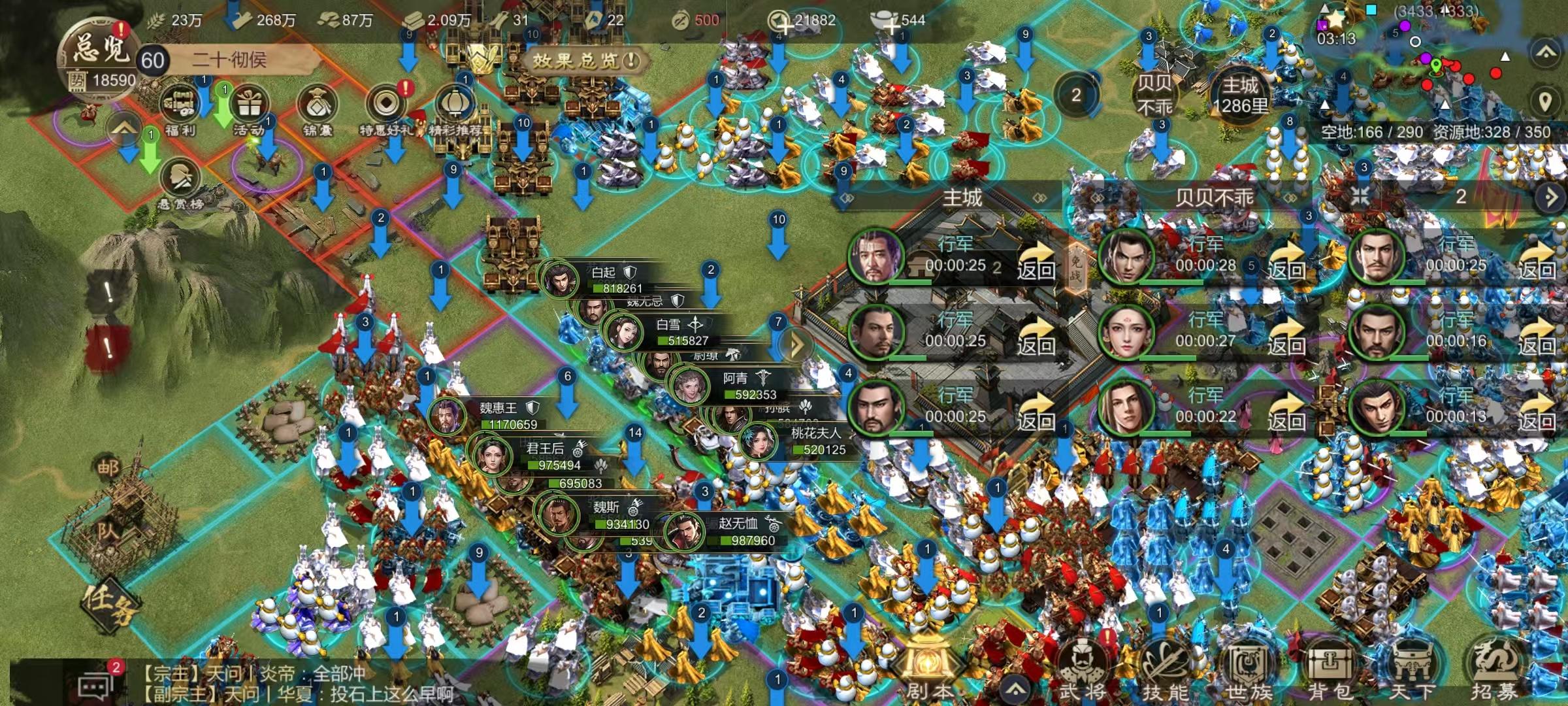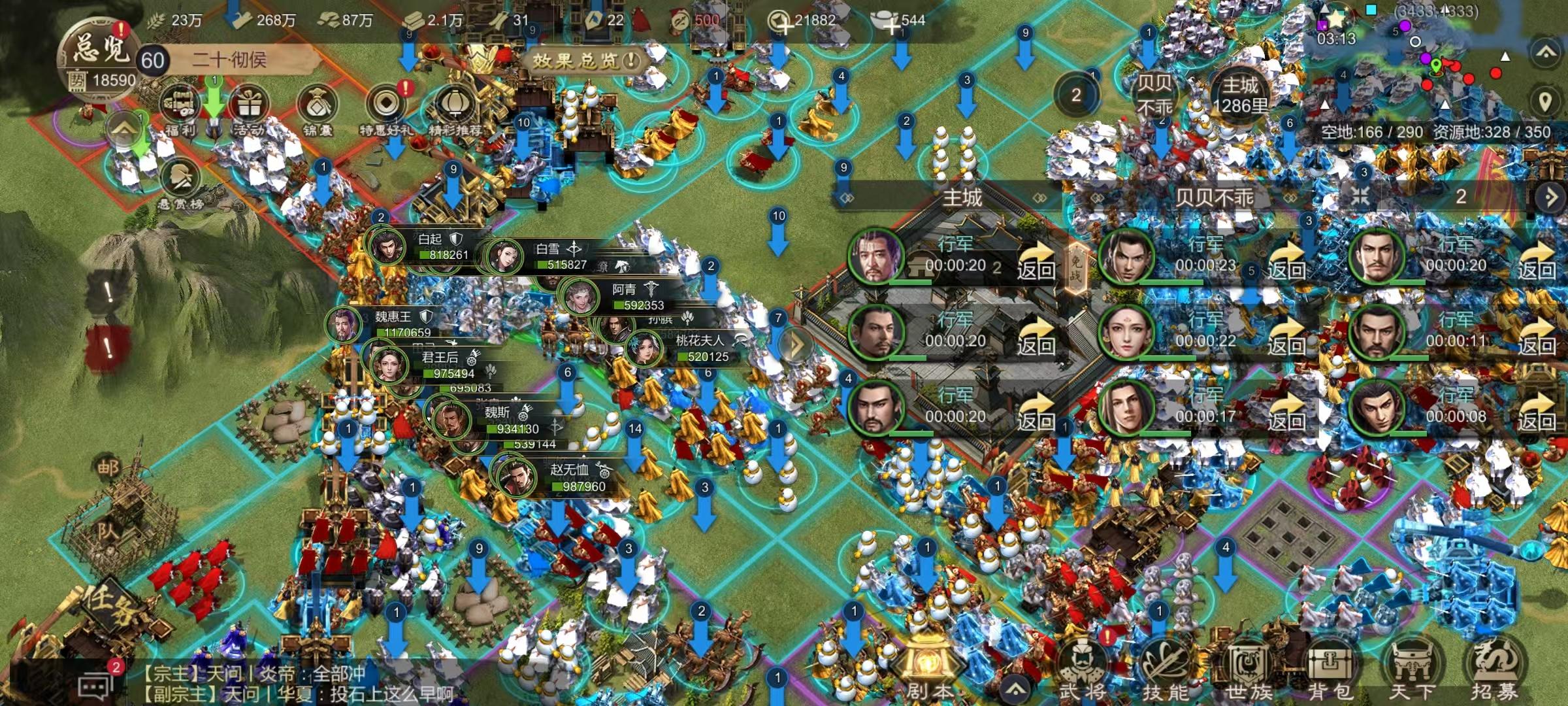 主要参战双方:秦国:梦桃园、武神丨将进酒、神御家族、缘起九州六国:琅琊阁、逆战天下、执笔画九州(未参战世族不作列示)本赛季可谓棋逢对手,将遇良才,双方纸面实力几乎旗鼓相当,由于秦国的种田盟参战力度相对更大,故人数上秦国占优。8.31 下午13:45 一匡九合,建立霸业!随着边境关卡的开启,战斗正式开始!不出所料整个世界随着开关立即进入卡顿模式,好在大家都知道六国剧本人多必卡,所以虽然行路艰