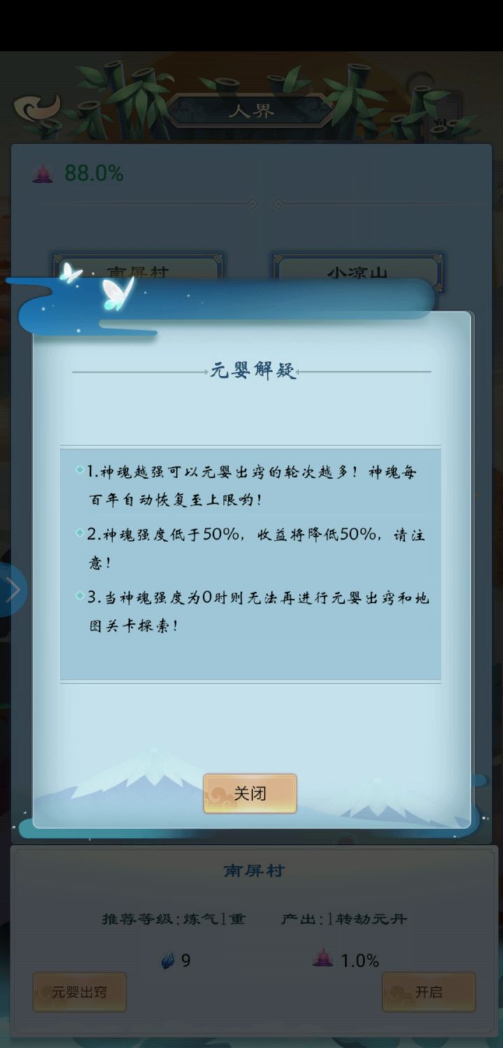 首先,感谢我们的道友-补刀小王子 的攻略输出~~~~~~~1 初入修仙界 按教程引导 点点点。。。2干货(1) 地图开启元婴-冥界,出窍-仙、魔界(2) 为什么境界比地图上推荐的高还是打不过?地图上的推荐境界不确定的一点是,推荐境界和个人境界之间有没有隐藏伤害加成,99%可能是没有的,所以可以把地图上显示的境界当成是扯淡。(3) 词条三维: 气劲 + 御气 + 气血(攻防血),这三