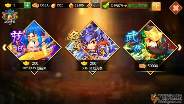 游戏里用到武将地方总结起来就三种:1、日常占领土地,占领城池。这种属于常规配将,你军营里的武将大部分时间都是这个配置。2、猛将挑战。猛将挑战无视本方防御,于是这里需要极端输出的武将搭配。3、擂台PK。这种属于武将队伍单挑的情况,这里和日常配将有些许不同。下面我给大家的配将思路是兼顾了日常需求的配将方案。第一队——前锋神吕布+中军神貂蝉+后军神大乔(日常打地最强组合)队伍分析这个组合抢掉