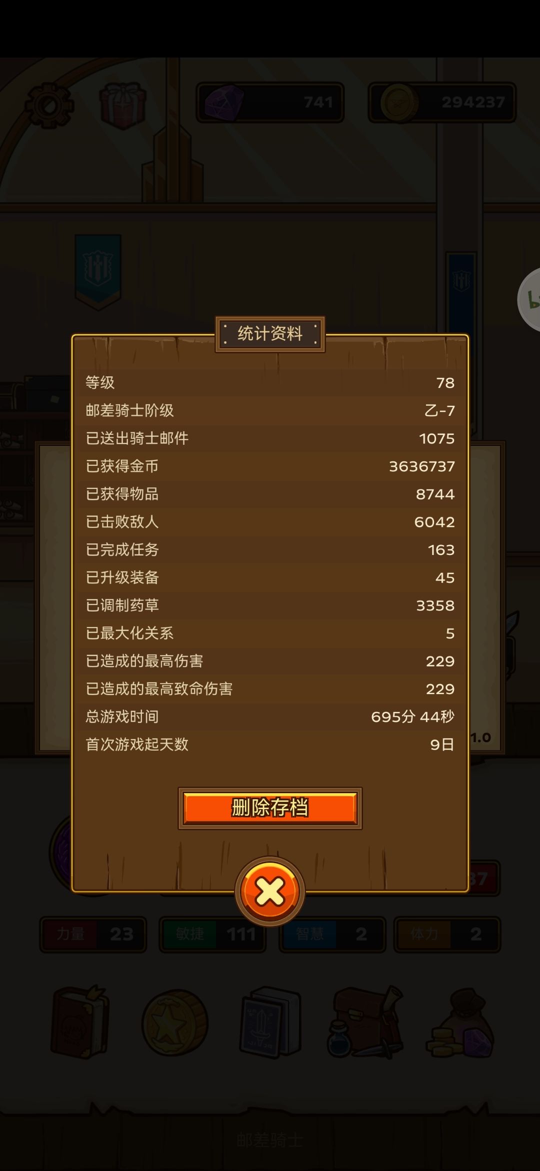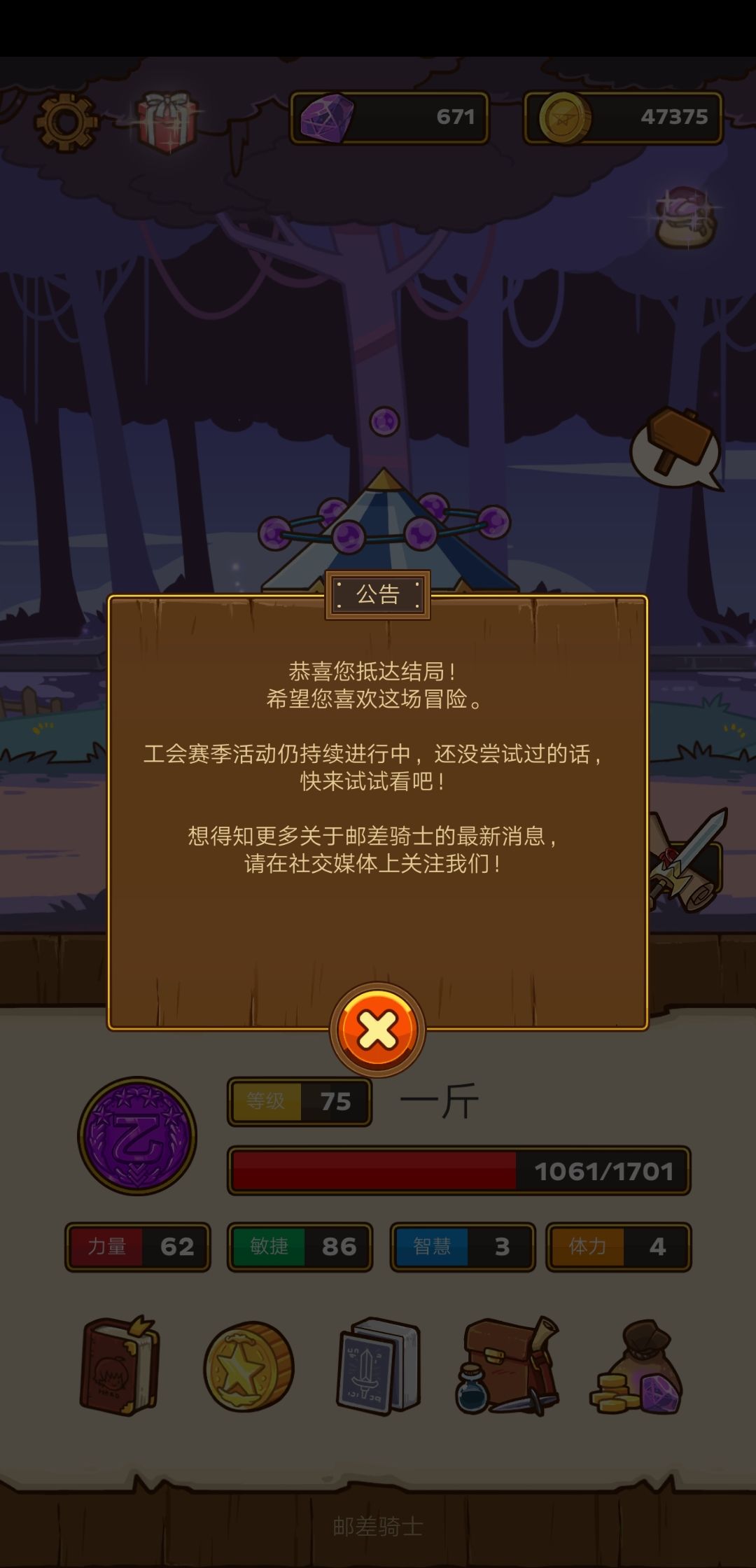 邮差骑士1我是今年(2023)三月份在play商店里偶然发现的,玩了小段时间发现还可以,然后想着国内商店里有没有,发现在taptap上有就毫不忧虑下下来了,不过下下来后就让它吃灰了一段时间,最近才重新燃起兴趣让它出土,一天玩五个小时左右,肝了五天终于通关了,也算是中规中矩吧,听说国内的都没怎么管理过了,我记得国外早已出2了,哎,就很可惜。 致谢大佬: 在这里感谢各路大神的攻略帖,后期少走很多弯路哈