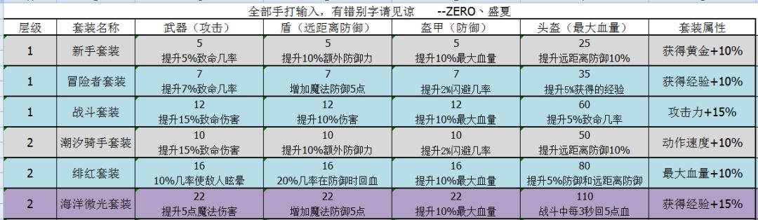 入门手册 (纯手打,有错别字请见谅) -- ZERO丶盛夏 1.加点怎么加 北风套:力量加到30,开始加敏捷到90,然后全部点力量 吸血散搭:力量加到30,开始加敏捷到80,然后把力量点到40,在把敏捷点到120,然后全部点力量74点 不加智力和体力 (还有很多玩法可以自选开发,以上为入门级的) 2.吸血散搭具体是哪几个装备 北风刀,永存盾,原始甲,魅影头盔 3.为什么有的套装不齐 部分套装在商店