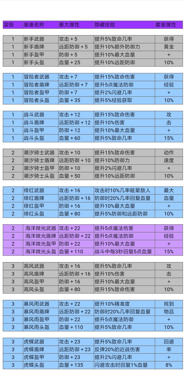 玩都玩了就写个简单的攻略吧~这是一份快速通关攻略,主要讲装备~1、彭彭村新玩家首先会进去彭彭村,这里的怪没有特别难打,新手套装就可以了,稍微升一点,但我觉得没必要升满星,因为没必要,当然肝帝随意~后来会得到一套战斗套装,这套建议全五星,因为性价比较高,可以用很久~这个时候差不多有了骑士阶级,这个一定要升级,但不是现在,建议在格里芬顿(第三个地图)那里刷,因为越后面的地图得的徽章越多,升级