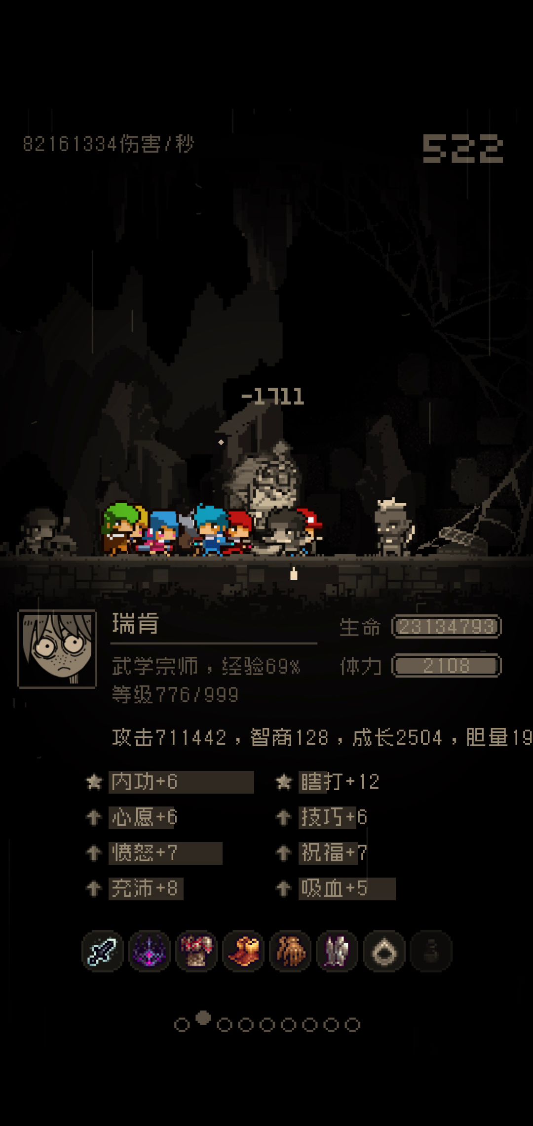 初期:随便武学宗师,带满,不要其他。中期:攒钱买高级酒,把后几个酒开了。然后屯钱。买学徒指环,升到1000成长。商店有学徒指环或者栗色、黄色、彩色果实就买下,强化指环用。后期:买带吸血、增伤的武学宗师,带学徒指环,把属性赶上来。然后装备带暴击爆伤。