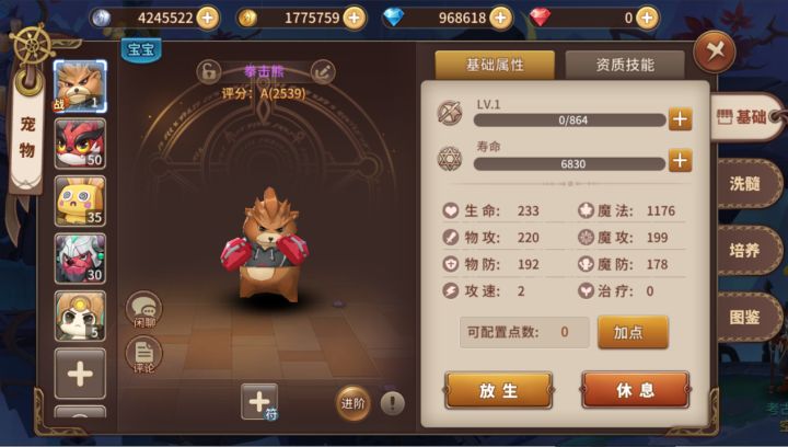 次元集结,开启时空召唤!日系幻想MMO手游《时空之塔》今夏Q萌来袭,治愈你的整个夏天~ 如此清新Q萌的画风,又怎么少得了我们经典的宠物培养玩法呢?今天就为大家好好介绍一番《时空之塔》中的特色宠物系统吧。【宠物属性】开启宠物面板,可以对宠物进行培养并选择上阵宠物。初始面板中展示了当前宠物的各项数值和状态,以及宠物技能。【宠物洗髓】宠物可以通过洗髓获得更高地资质。洗髓是随机改变宠物各项资质的数