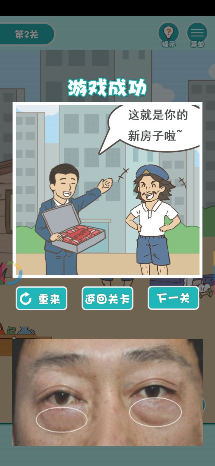 第一关拿陨石去卖第二关先点左下角箱子再向右把刷子房在油漆上最后吧刷子拿去刷墙第三关向右帐篷后面有斧子丢进河合身背后有个普通斧子第四关拿吸尘器向右拿钱包硬币去买电池拿吸尘器吸取款机第五关垃圾桶里有月光宝盒向右放在石头上有针放在钟上转时间拿硬币去买彩票第六关向右商店左下屠龙宝刀去杀怪拿去卖钱第七关先向右拿电视机上的金子沙发下的钳子后面的门里有个锯子再回去拿菜刀和斧子【电饭煲旁边】砍断锁链就