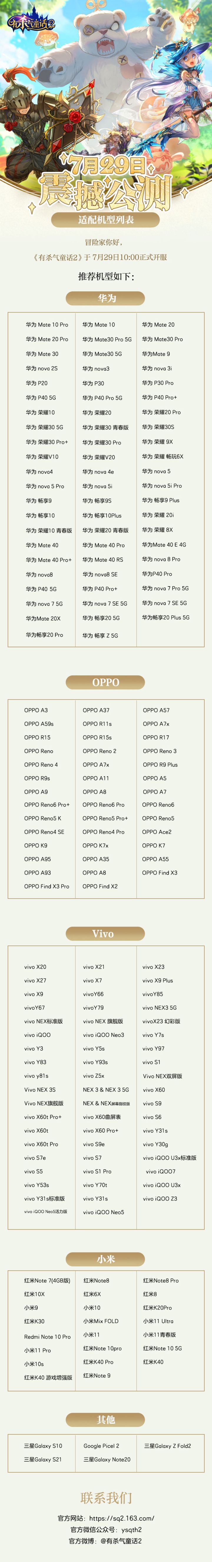 听说部分冒险者们对适用的机型有疑问,小红帽整理了一份适配机型指南以便大家参考↓ ☆有杀气童话2全平台公测已开启☆点击以下链接前往官网公测下载游戏吧↓https://sq2.163.com/【联系我们】游戏官网:http://sq2.163.com/官方微博:@有杀气童话2官方微信公众号:ysqth2游戏论坛:https://sq2.16163.com/官方QQ群:官方