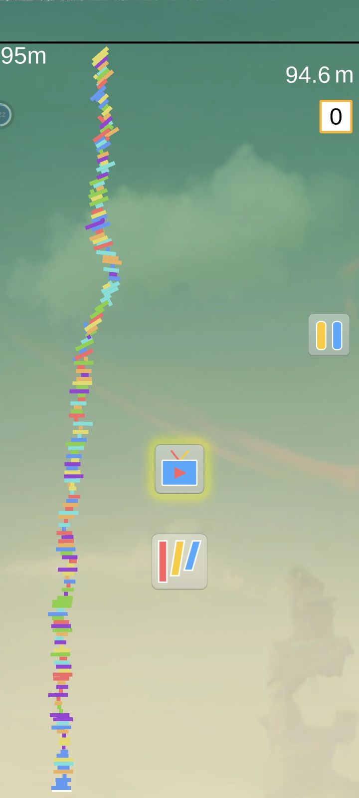 先告诉大家一个小技巧,如果搭到后来平台斜了的话可以把后续的长条放在靠上的一边,可以让你高度涨的更快(๑•̀ㅂ•́)√