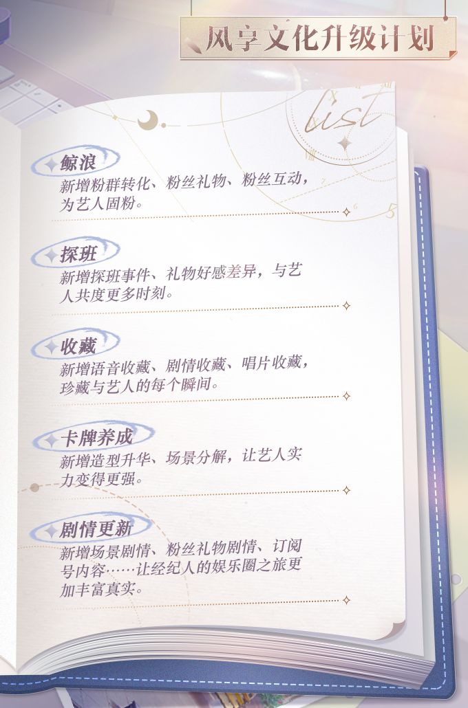 《星花之夜》将开启限时复刻!经纪人可以使用“星花之夜邀请函”在“高光时刻”中抽取活动限定“星花之夜”系列造型。在“庆典现场”参与关卡获取“星花应援包”,累计一定数量还可以解锁活动专属剧情《
