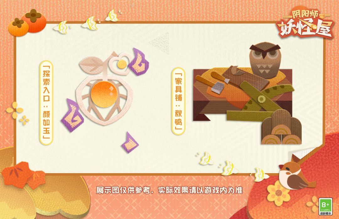 猫头鹰的鸣叫回转游荡在庭院中 累累果实挂在枝头 在浓浓的秋意蔓延之时 梦境的间隙也悄然出现 「坠梦时光」再次开启 庭院坠入了金色梦乡 ◇秋季装饰上新◇ 上新装饰 「家具铺:秋鸮」、「探索入口:颜如玉」 获取途径 家主可在「坠梦时光」活动兑换商店中进行限时兑换 ◇坠梦时光活动开启◇ 活动时间 9月29日更新维护后-10月12日23:59 商店兑换时间 9月29日更新维护后-10月19日23:59 活