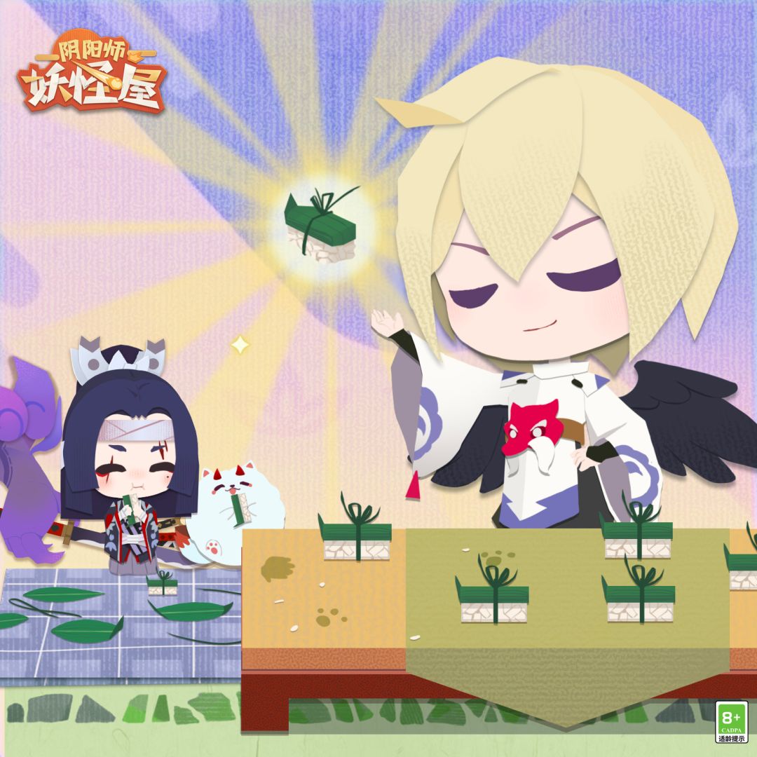眼看着端午节将至 艾叶和粽子的香味如约飘荡 庭院里的崽崽们都迫不及待地准备起粽子啦~ 看得出来大家的手艺都……都十分的有创意! ◇端午节独家靓粽◇ 对玉子寿司的爱都是真的 海的味道,粽子知道 蝙蝠粽子,出击! 这个形状是**(已屏蔽) ◇端午节福利活动一览◇ 当然,除了小妖怪们的独家靓粽 节日里给家主的心意也不能少! 「端午节限时福利」 ◇3天免费领取端午节福利◇ 活动时间:6月3日0:00-6月