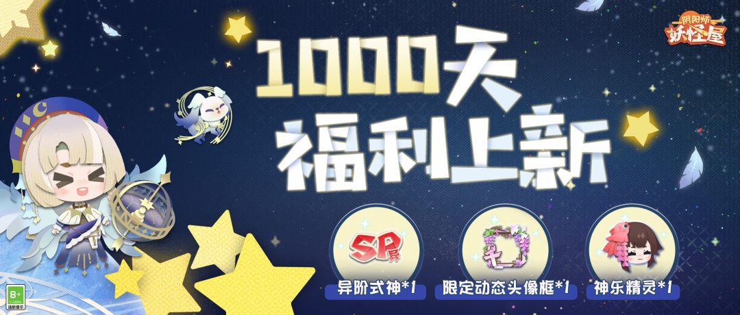 可爱的小妖怪在庭院打闹玩耍 农场新种的植物正等待发芽 不知不觉中 家主经营妖怪屋快1000天啦! 为了感谢一直以来的陪伴 卡米酱特地准备了饱含心意的礼物 快来看看都有什么吧c(ˊᗜˋ*c) 家主达成1000天登录即可获得以下奖励↓↓ ◇限定头像框动态展示◇ ◇神乐精灵动态展示◇ 想要和崽崽们更加亲密接触的家主可以加入网易官方《阴阳师:妖怪屋》社群~进Q群即可参加活动,领取各种神秘周边哦~ 妖怪屋官