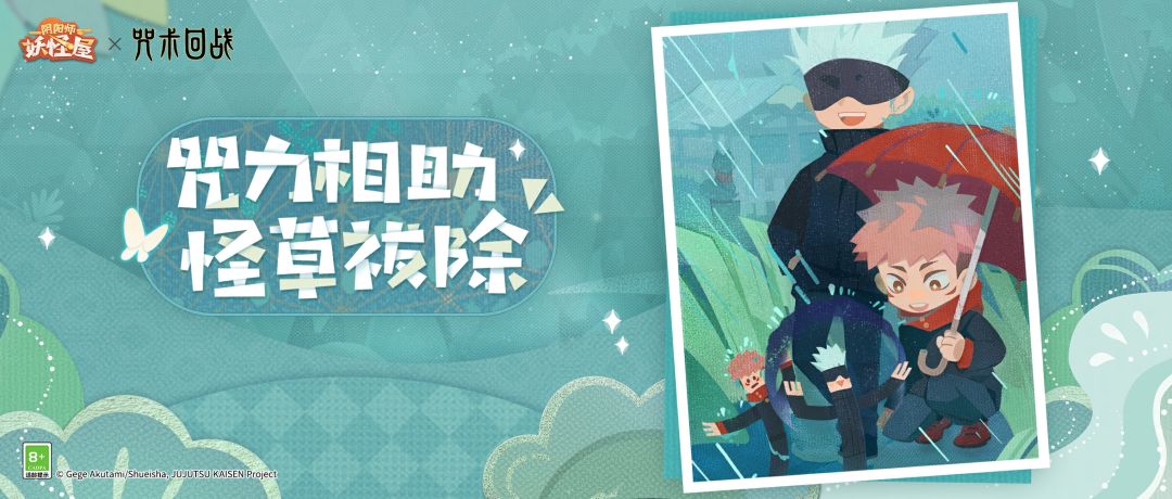 庭院大危机! 怪怪草疯狂生长,小妖怪们的家园被埋没 5月31日-6月27日期间,前往页面参与游戏 即可获得丰富联动专属皮肤券哦! 快带领两位咒术师大力除草 营救摇曳草和小妖怪,拯救庭院吧↓↓↓ ◇联动开启时间◇ 《阴阳师:妖怪屋》× TV动画《咒术回战》联动活动 将于6月14日开启 想要和崽崽们更加亲密接触的家主可以加入网易官方《阴阳师:妖怪屋》社群~进Q群即可参加活动,领取各种神秘周边哦~ 妖怪