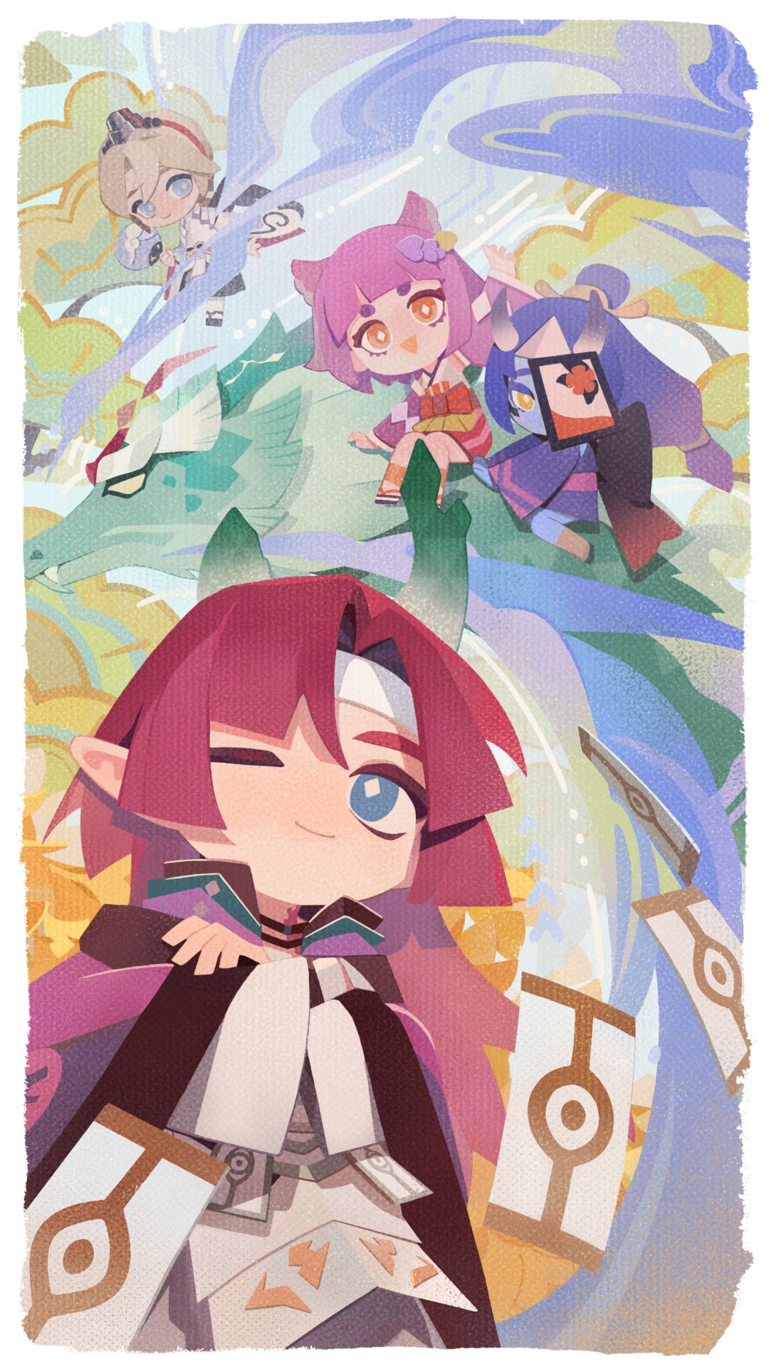 原本与龙相伴的风神只是孤身在云端中享受俯瞰的美景 后来,龙脊上的冷清逐渐被吵闹的声音所取代 ◇苍风一目连-风乘云海◇ 庭院里的妖怪们说,想飞上天看看,所以来问我,可不可以骑着龙去飞一圈。 开玩笑,这怎么可以!我的话怎样都没关系,可是龙他—— 龙拉过我的手臂,微笑地看着我点点头。 妖怪们骑在龙背上,发出惊喜的笑声,我也不由地笑了起来。 「你也一起来玩吧!」「一起来嘛!」 她们停在我旁边,邀请我一起飞