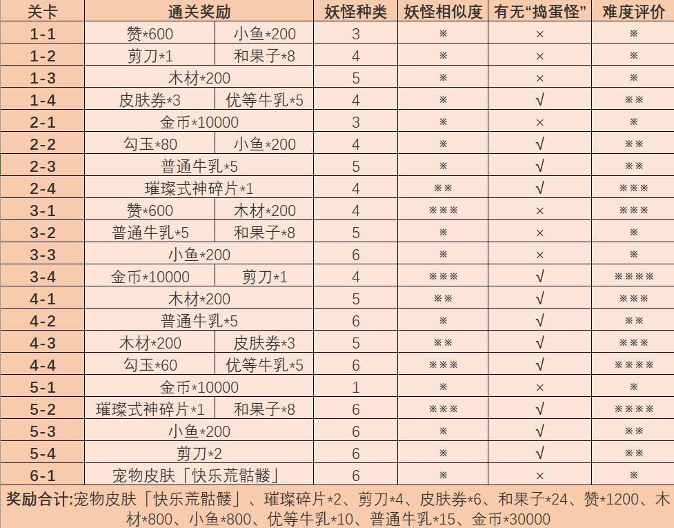 ※活动时间※ 抢先体验服:3月24日维护后 - 3月30日23:59 正式服:3月31日维护后~4月6日23:59:59 ※活动入口※ 在荒骷髅宠物处点击对话框或者在鲤鱼旗中点击活动页面进入 ※玩法说明※ 1. 寂寞的荒骷髅想让家主帮它找一个朋友,被很多同样寂寞的小妖怪拦住了去路。点击卡牌可以翻出小妖怪,连续翻开两个相同妖怪卡可以进行消除,全图有5X6张卡牌。 2. 捣蛋怪:妖怪中有些捣蛋的小
