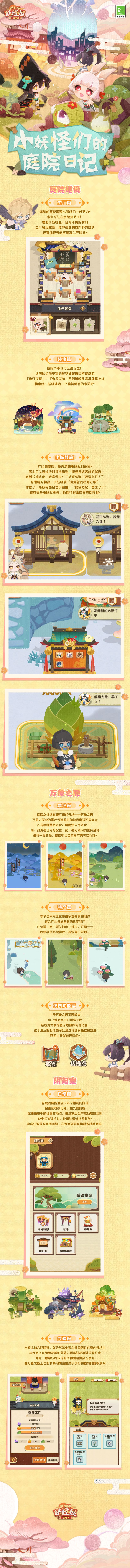 ☆出发吧!和家主一起开启新世界探险~☆ 家主,鼬宝来介绍庭院玩法~这里可以建造工厂、自由装饰,还、还可以看到妖妖前辈们的最新状态—— 在庭院外,还有一个超大的万象之原,可以在里面钓鱼、捉蝴蝶、采集好多好多有趣的植物!(期待) 因为有太多好玩的了,所以鼬宝专门做了一个庭院笔记!如果在旅途中能小小地帮到家主,鼬宝就会很开心了~ 还有【集结!妖怪屋新世界】H5活动(链接:https://yysygw.1