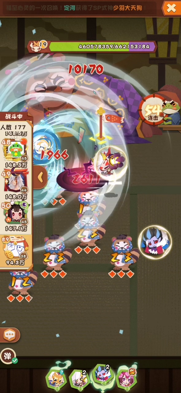 阎魔起手控四个,椒图拉线,然后茨木小狗大都能吃到连线的加成。第一回合对面四个罚站,等于己方多了一轮的输出。56,58,60都适用。