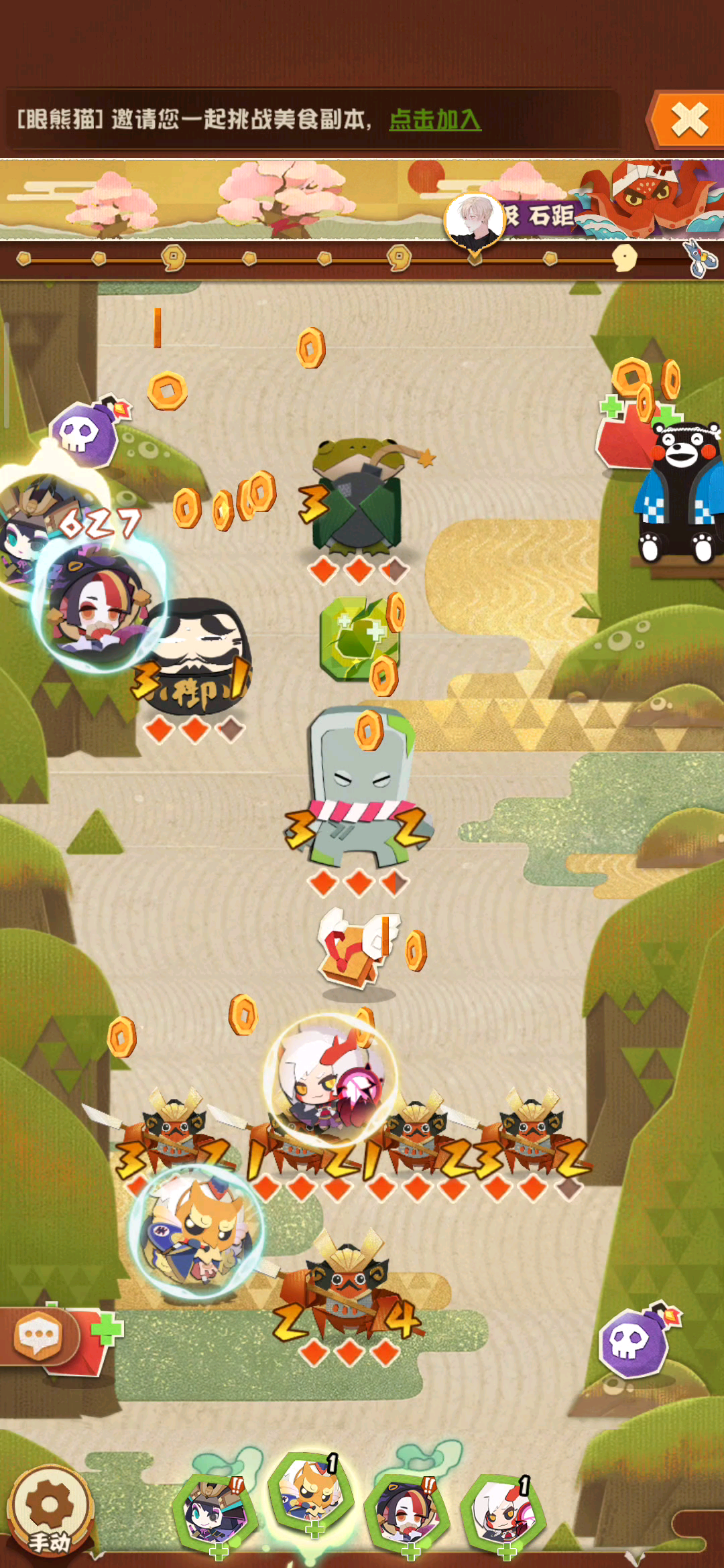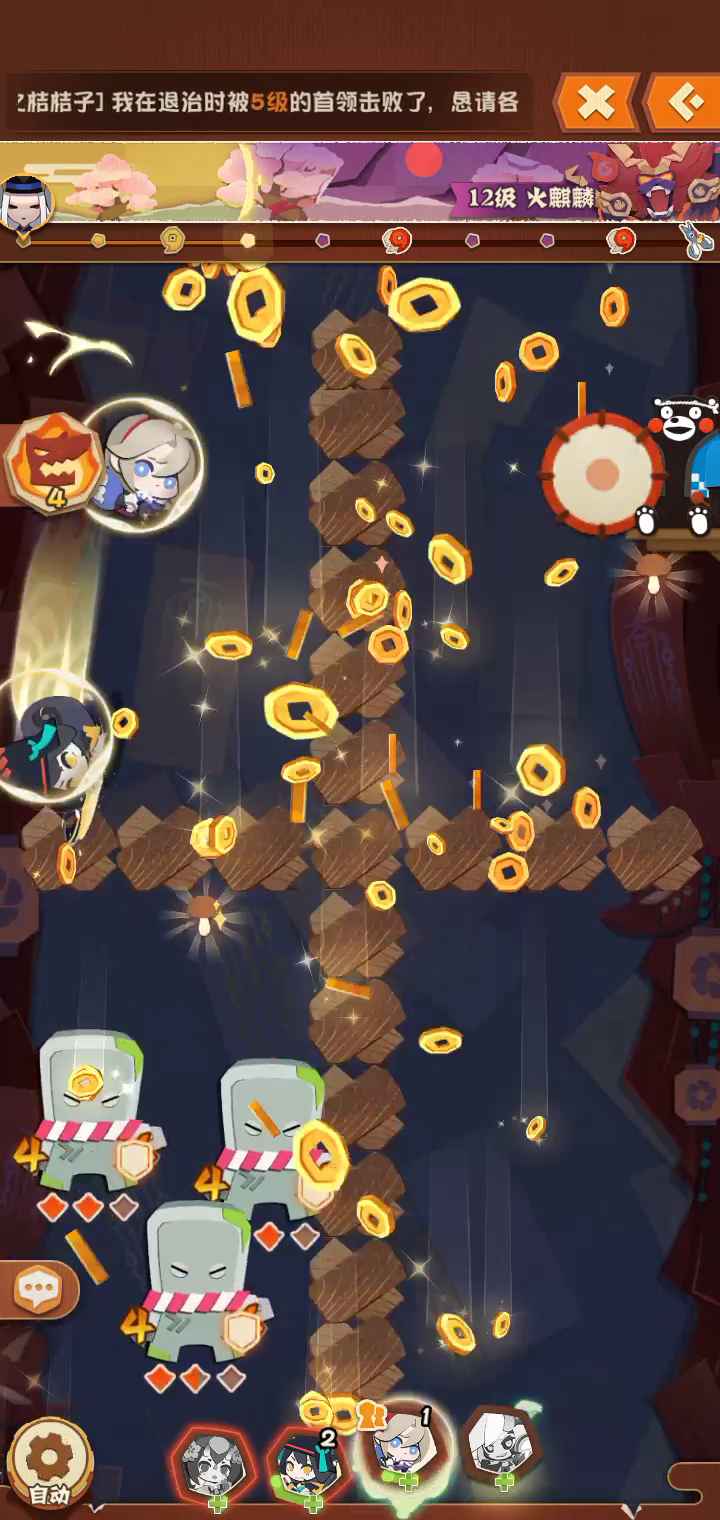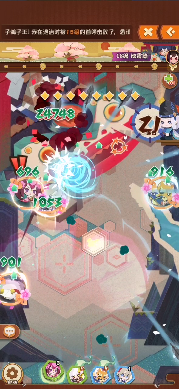 一共四个区域,每个区域都有怪 右上一个炸弹怪不在12回合杀了直接团灭 右下一个青蛙妖刀第二回合100%秒你一个(??这个才是真的妖刀吧) 左上全部是怪还出怪出怪你人就背挤到其他区(你杀一两个没用一样被挤出去)他们可以打你 左下右头怪很肉高伤