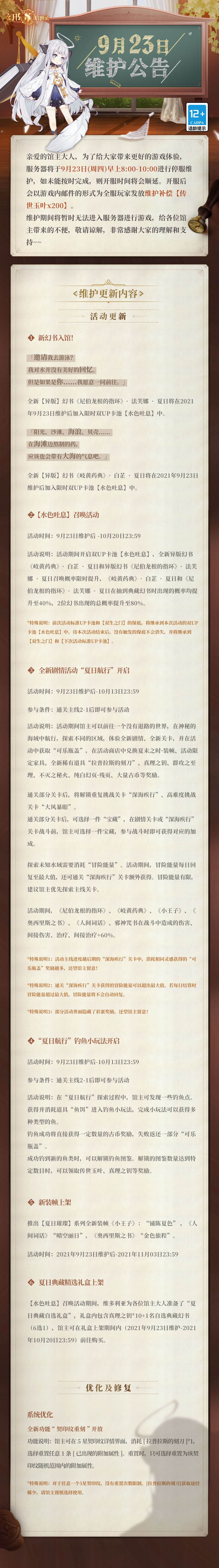 阿克夏情报局丨《幻书启世录》9月23日维护更新公告