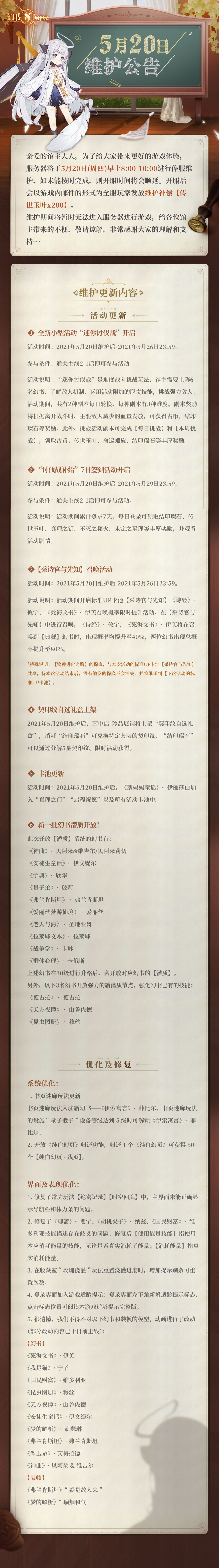 阿克夏情报局 | 《幻书启世录》5月20日维护更新公告