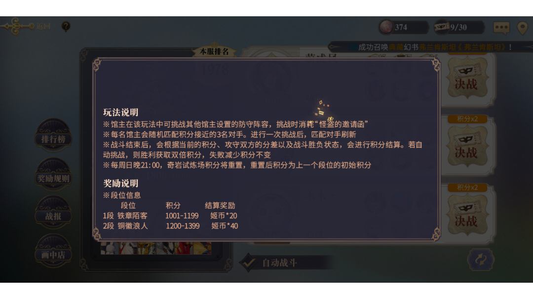 之前已经有过这种情况,仔细看看竞技场说明和更新公告,今天周四,更新后导致奇岩竞技场段位降低,没有截图到掉段的提示,但视频应该能说明。这种问题也不是我一个人有,请官方出来解释一下吧。