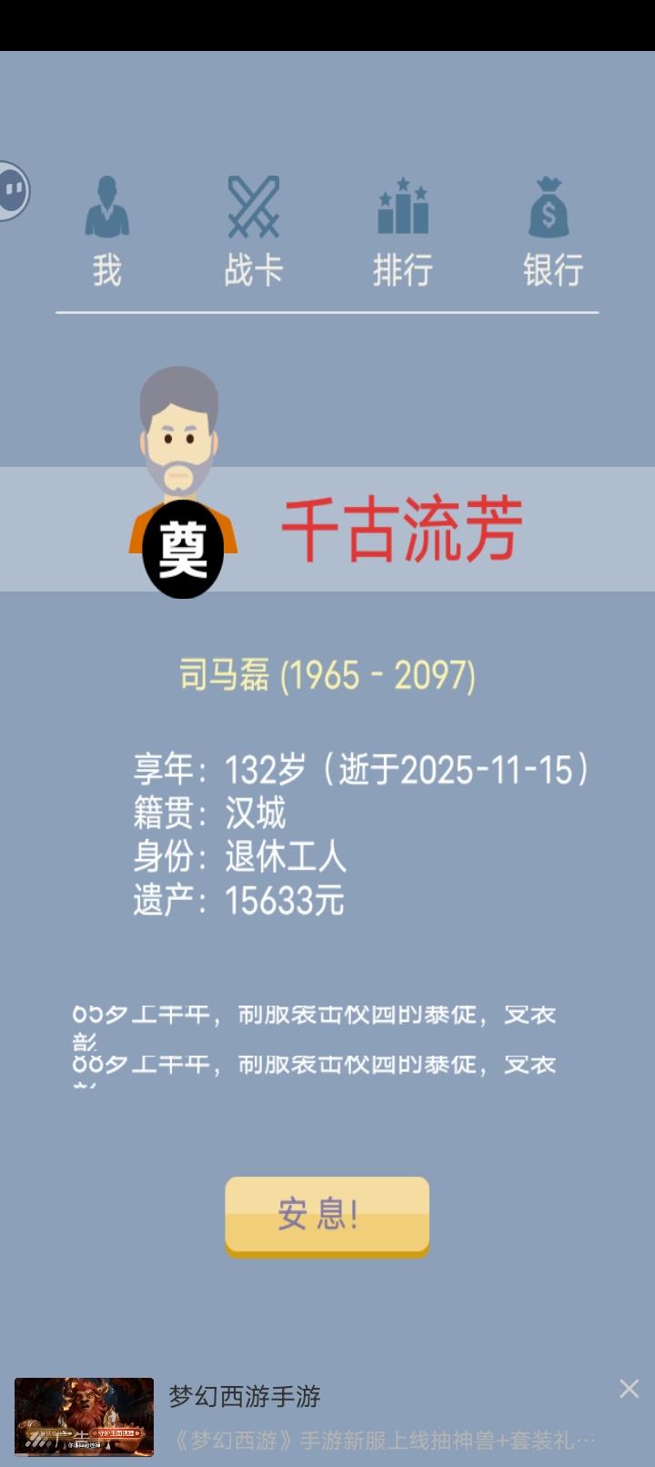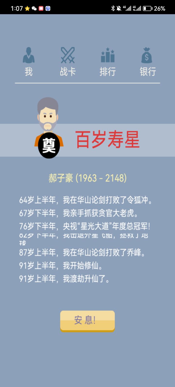 玩到了170岁,拯救过世界,当过武林盟主活捉过外星人,靠扫黑除恶赚外快。哈哈哈哈哈哈哈