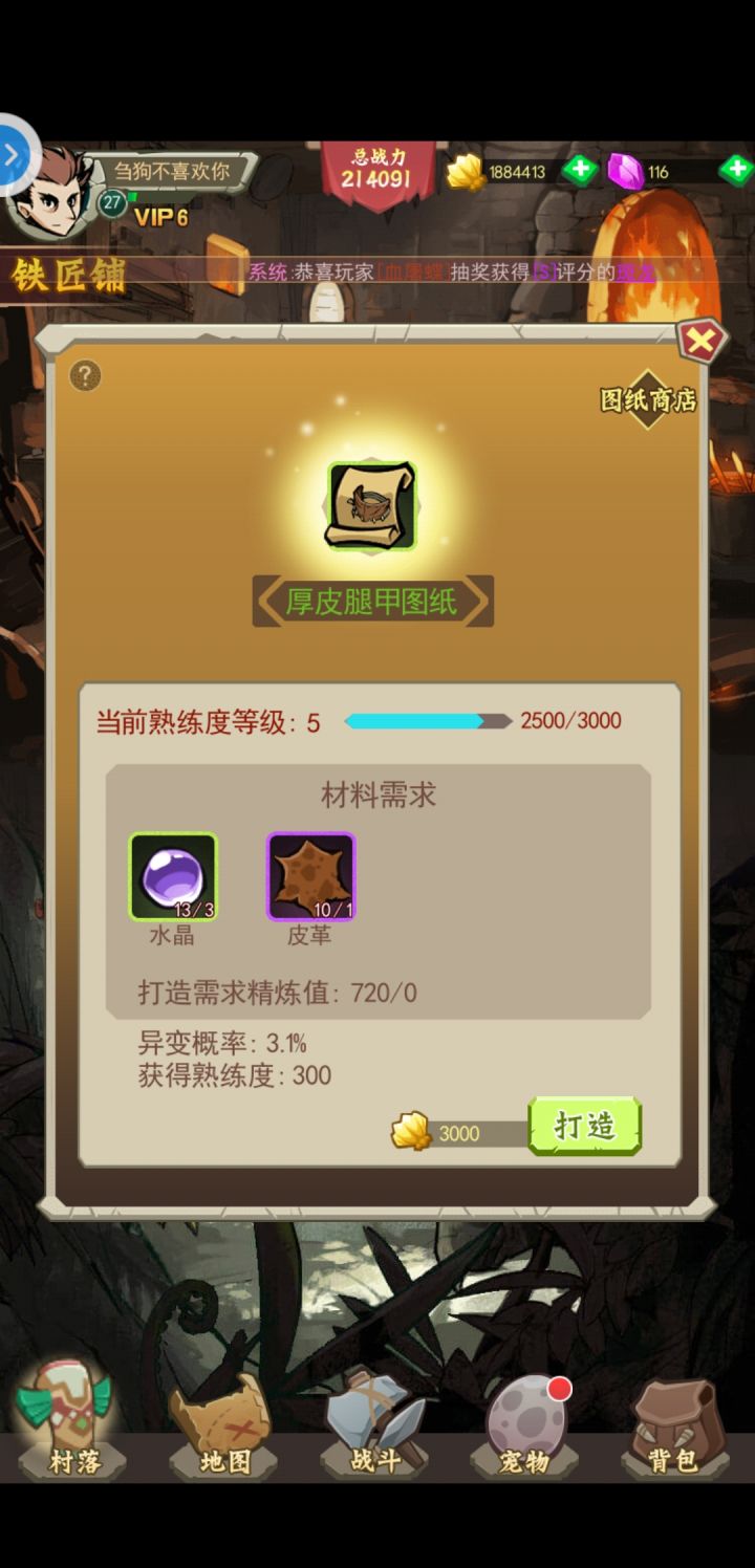 拿到游戏先别忙着抽奖,拿七千钻石抽s级的龙就好,其他用金币抽,ss级的龙是要交配才能获得的(注,一条龙只能交配一次)。钻石千万不要乱花,买那些贵的东西,而又用不了。ss龙比s龙多一个技能。首先铁匠铺是有熟练度的,你就算买了贵的图纸也没有熟练等级还是打不成,而且浪费钻石就算打的起没有材料还是浪费。每天中午大厅左下角会刷新一个神秘商店财富富有的可以看一下。竞技场,千万不要刚开启就打,很容易