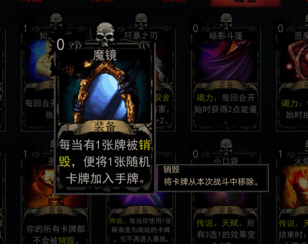 #我愿称之为最强搭配 开局“黑爪”配“魔镜”,资源指定无限用; 搭上“次元盾”,护甲蹭蹭增; 若是再把“重甲”安排上,你就基本死不了(唯例外的有[呃总共是四种情况,再加上一条[表情_捂脸哭]]:①牌库清零后还要受到6点及以上攻击,但此时“手牌剩余少于7张”、②作死装了“圣杯”及“水银沙漏”或“秒表”、③不巧碰上“全部装备消失怪”,而你在一回合内没杀掉它、④牌库清零后,角色自身存在的流血debuf