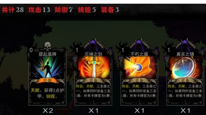 #全能牌组设想 出现了?可灭杀满状态8级死神、适用于任何战斗场景的全能牌组! 卡组搭配推荐: (全23或24张牌) 传说圣器“三件套”、 2~3张“书签”(没有就“全看脸”)、 1张“炎爆”(“连珠火球”可平替)、 1张“绝对防御”(“石墙”可平替)、 1张“群体驱散”(“单驱”/“吸收也行)、 1张“净化”(或“病毒转移”,“转化”也可以)、 1张“巨剑”(优先“固有巨剑”)、 1张“圣杯”(