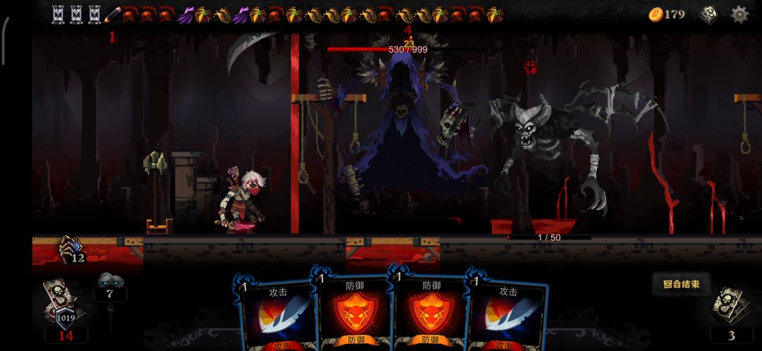 我现在在玩“自定义无尽”,人物“壕猪”,“难度1死神1”。打到第19个轮回了,说实话,后面的难度提升,无非就是各类怪物(“死神”除外)的血量和攻击增加…开局分身、重剑、召集、金属化,一套连招疯狂“叠甲”,一个“盾击“不够就两个…总之,怪在我手下根本活不到第二个回合(除非我想见一见死神了)前期无尽还挺爽,第7、8个轮回之后就有些玩腻了(当然,偶尔也会尝试“诅咒强攻不顾流”),虐怪虐得实在太无聊了啊(金币现在2万多,牌库200多张牌)要不是我有个“达成100轮回”的执念,真想现在就放弃了啊如今争取1天打10轮,再等8天,看看最终能不能实现我的目标(有点期待最后的结算页面会是什么样子,虽然肯定是自杀的“失败”结局)