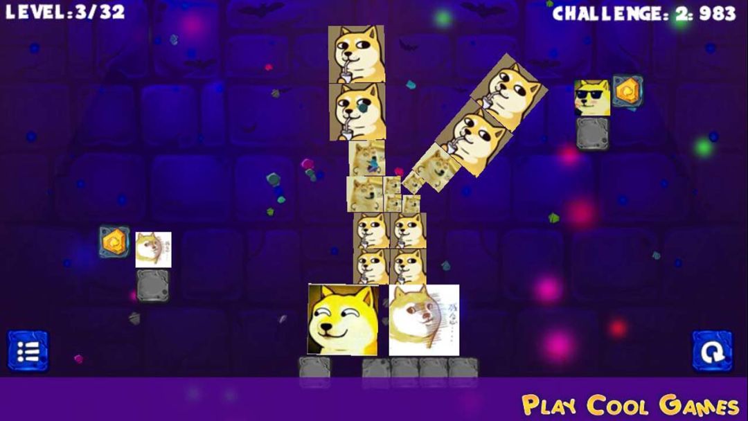 点击有神烦狗图案的方块。会将方块击碎,所有的方块落下就能胜利过关。