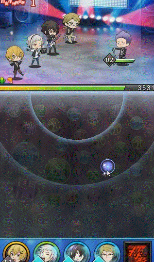 担任主唱的中岛敦。用尽力气演唱的样子,仿佛在燃烧着生命。在众多聚光灯倾泻而下的舞台上,他毫无疑问闪耀着比这些灯光更璀璨的光芒。队长技能:极限演唱的人虎效果:翠属性球的出现率大幅度提高(大)。主动技能:还可以继续唱哦!效果:对全体敌方成员造成攻击力×5倍的翠属性伤害。辅助技能1:那么,请听下一首歌曲!效果:全消时触发。一回合,令随机一名敌方成员的伤害降低175。辅助技能2:响彻四方的热