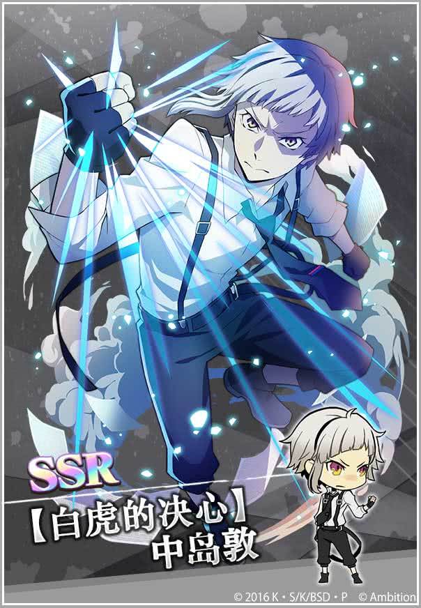 【开服纪念第2弹】即将开启!新角色“SSR【月下兽・人间失格】中岛敦” “SSR【重力操控】中原中也”登场♪活动时间:8月29日13:00~9月5日12:59【关注我们】如果您喜欢我们的游戏,请关注官方网站、官方QQ群等获取更多游戏动态。欢迎您随时给我们评价、留言。玩家交流官方①群:595697974(已满)玩家交流官方②群:697588765(已满)玩家交流官方③群:1147117