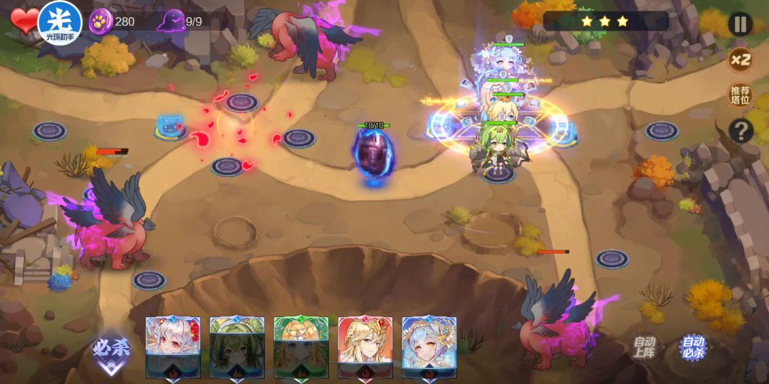 我这破练度应该没人说我不是0氪吧。。。按其他人攻略来说,这应该是套挂机通关阵容,但后来门琴莫名其妙死了,可能是骷髅弓箭手搞的。注意以下几点就行: 1.前排要扛住开局两块石头,60000多血,当然你要防御高血少点也没事,我的杜兰防御低。 2.遇见火流星雨(那个盲女放的?),蓝灰史莱姆(蓝色应该是第3波下面出2个,灰色是第5波上面出3个),骷髅火焰弓箭手(第3波末下面有一个,第5或6波上面有一个),天狗(旋风一开必死一个)一定要开杜兰或者拉尔纳克斯棺的大招,拉尔纳克斯棺的大招结束放时祷书大招奶回来。 3.开局在白狼第一个大招之前可能会漏个石头人,一定要开杜兰大,不然时祷书会没。 4.一定要把杜兰放在时祷书的奶量范围内。 5.门琴的大放在白狼和杜兰中间,至少覆盖他俩。 6.手慢的开1倍速(比如我) 7.肯定有更好的办法,我的仅供参考,勿喷。