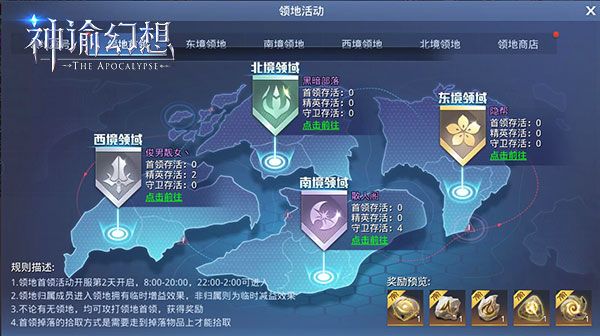 大家好~我是小七。游戏正式上线至今,我们收到了很多关于游戏的建议以及评价,也意识到了自己的很多不足之处,后续我们一定不断完善提高游戏体验,如果各位玩家大大对我们的游戏有什么建议可以继续在进行反馈哦!此外,相信大家都已经加入公会和小伙伴们一起征战亚兰大陆了,那么就让小七给大家介绍一下领地活动的玩法吧~【四域之主 威震寰内】领地活动在开服第2天开启,活动领地分为东境、南境、西境、北境四个领地,每