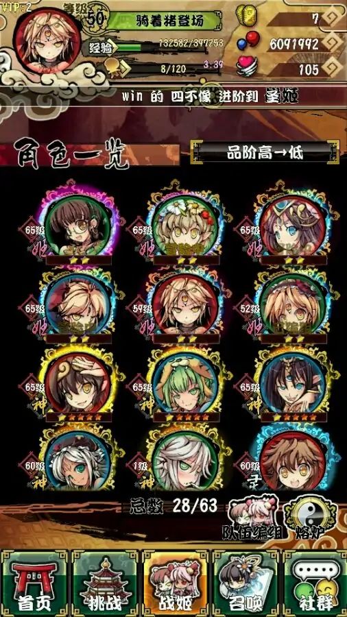 关是通了,开局初始刷天照八咫镜后狂升基本就能过,目前来说不重氪,反正我暂时没氪过都能过,但是该怎么说呢。游戏现在没什么动力玩,升级材料不多,刷也不难,但是已经不想升人物了,重复重复再重复的刷很烦,哪怕整个加倍体力出双倍材料的机制我也能刷,就这一个一个的出有时还没有,我是真刷到吐了,卡我都没抽过除非出八咫鸟不然我真的不想再突破了