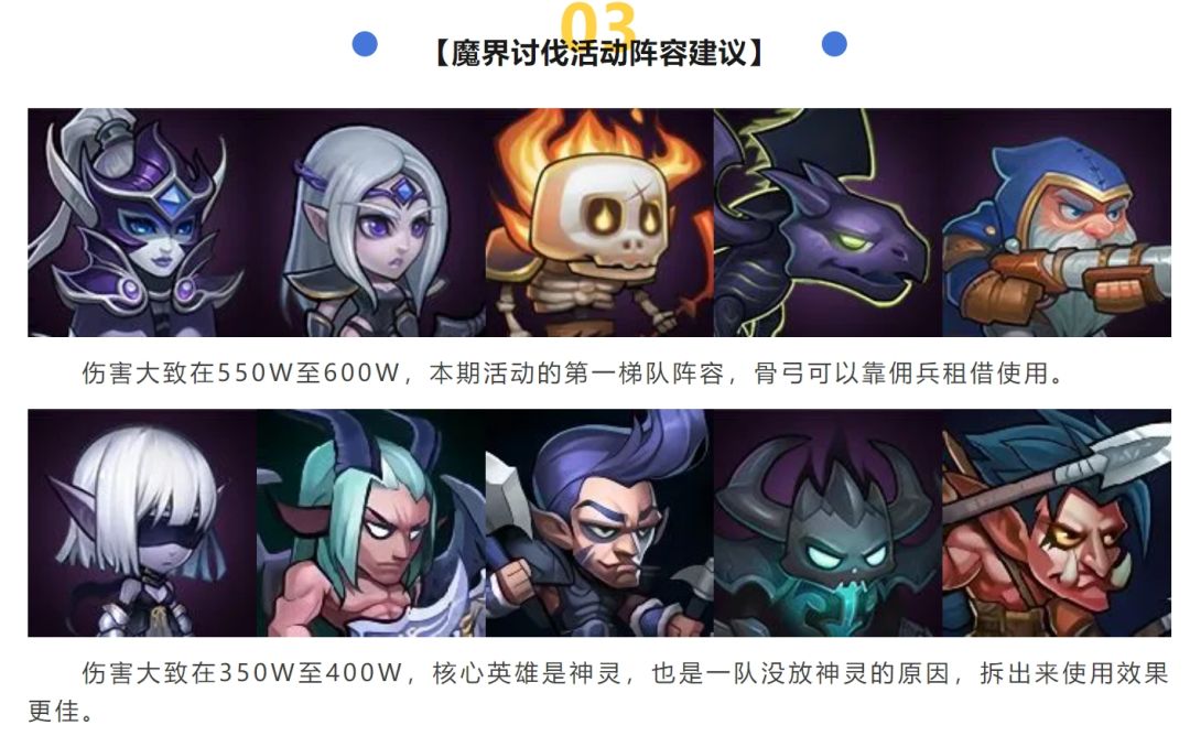 队长大大们好,这里是老黄说dota,欢迎大家移步公众号获取最新攻略。 “魔界讨伐”马上上线怀旧服,作为新玩法且有头像框等奖励,受到许多队长大大的关注。作为先锋服玩家,提前体验了“魔界讨伐”自然也有一些摸索出来的阵容和技巧,老黄结合大佬“达拉然张铁柱”的心得分享,整理了这篇内容供各位队长大大参考!那么废话也不多说了,魔界讨伐体验心得,一起来跟着老黄看看吧!前排预祝各位拿到心仪的名次与奖励! 【魔界讨