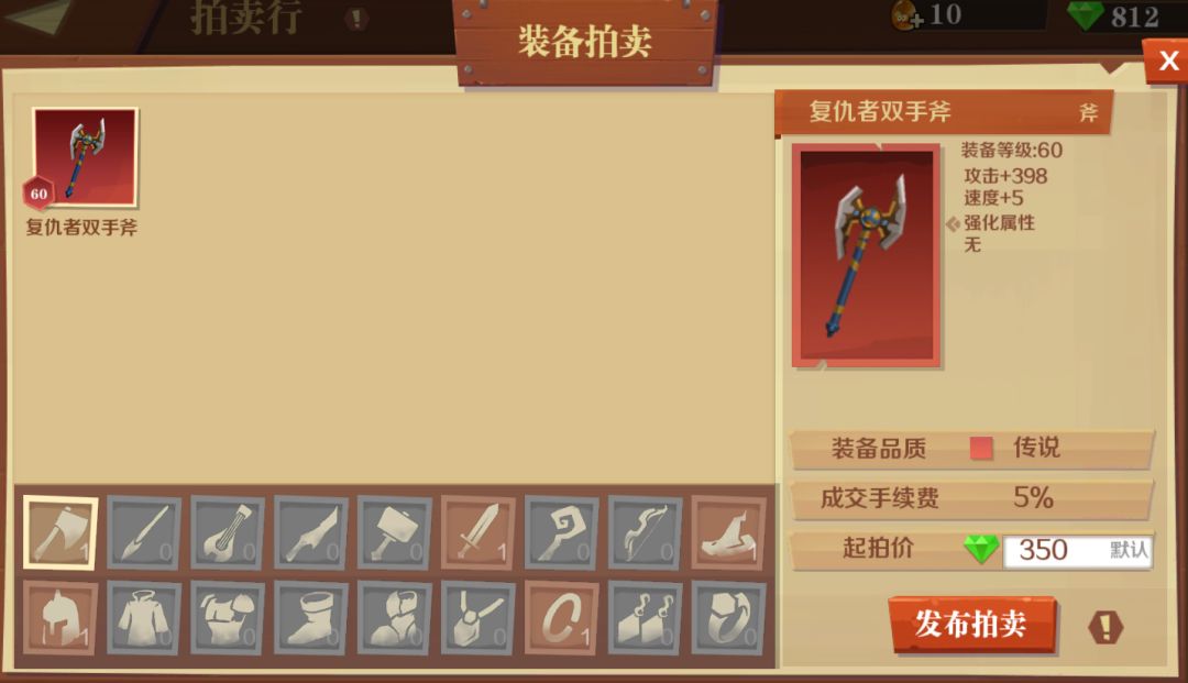 各位店老板们又见面了~今天给大家介绍的是我们的拍卖玩法。废话不多说,赶快开始吧! 1. 上架拍卖 想上拍卖行可不是这么容易的哦,拍卖行的装备需要满足两个条件:1.30级及以上的装备才能上架。2.品质要达到传说或以上才能上架。 当我们拥有符合条件的物品之后,可以点击拍卖行-我的拍卖-点击栏位,选择对应的装备。就可以设置价格进行发布拉~ 2. 拍卖物品 既然我们自己能上架物品,那肯定也可以竞拍别